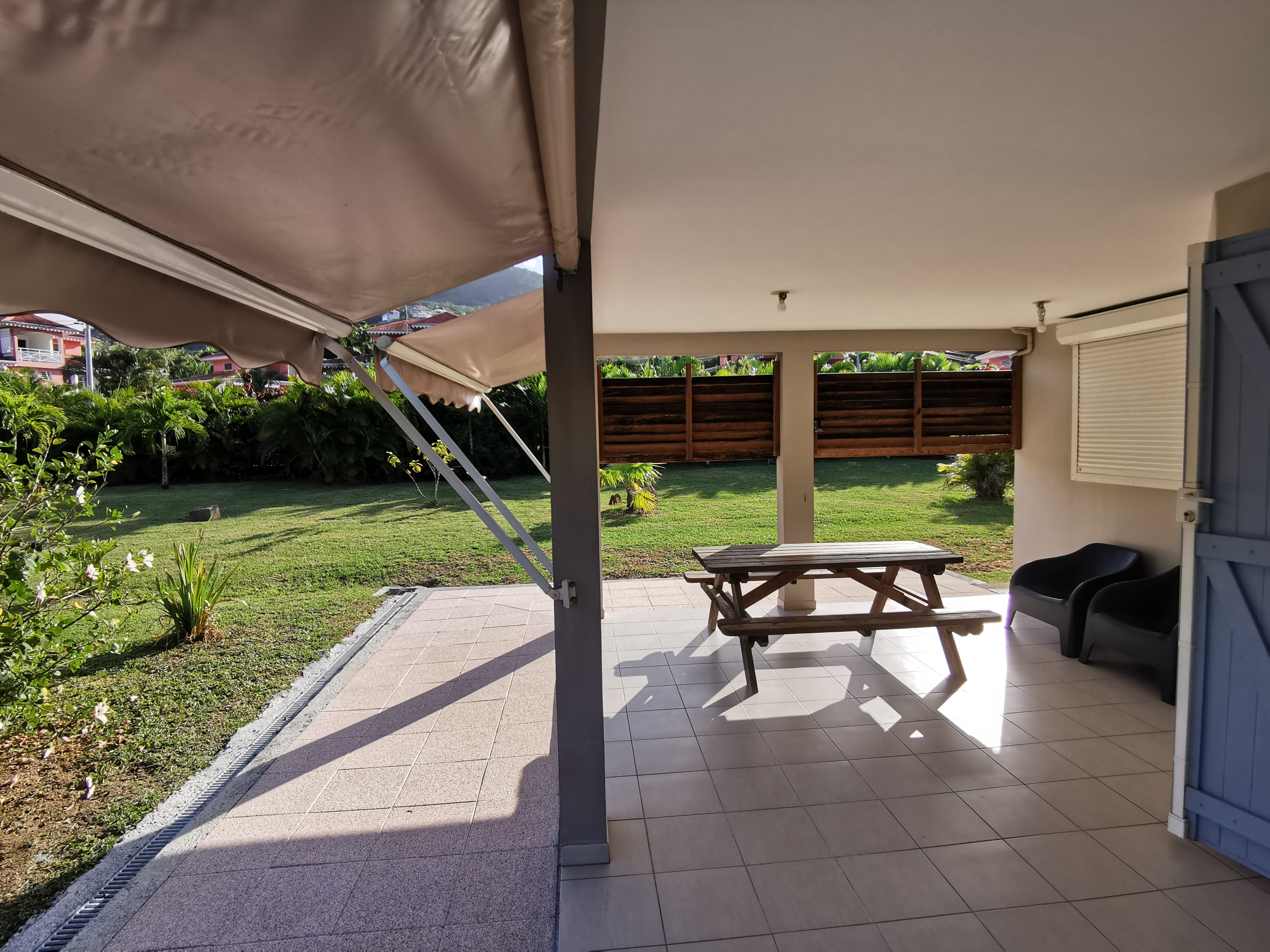 The 19m² terrace and the view of the garden add an additional dimension to your stay. You can enjoy outdoor spaces with garden furniture, ideal for moments of relaxation or outdoor meals. The sandy beach of Anse Mitan is just 100 metres away, offering immediate access to beach activities.