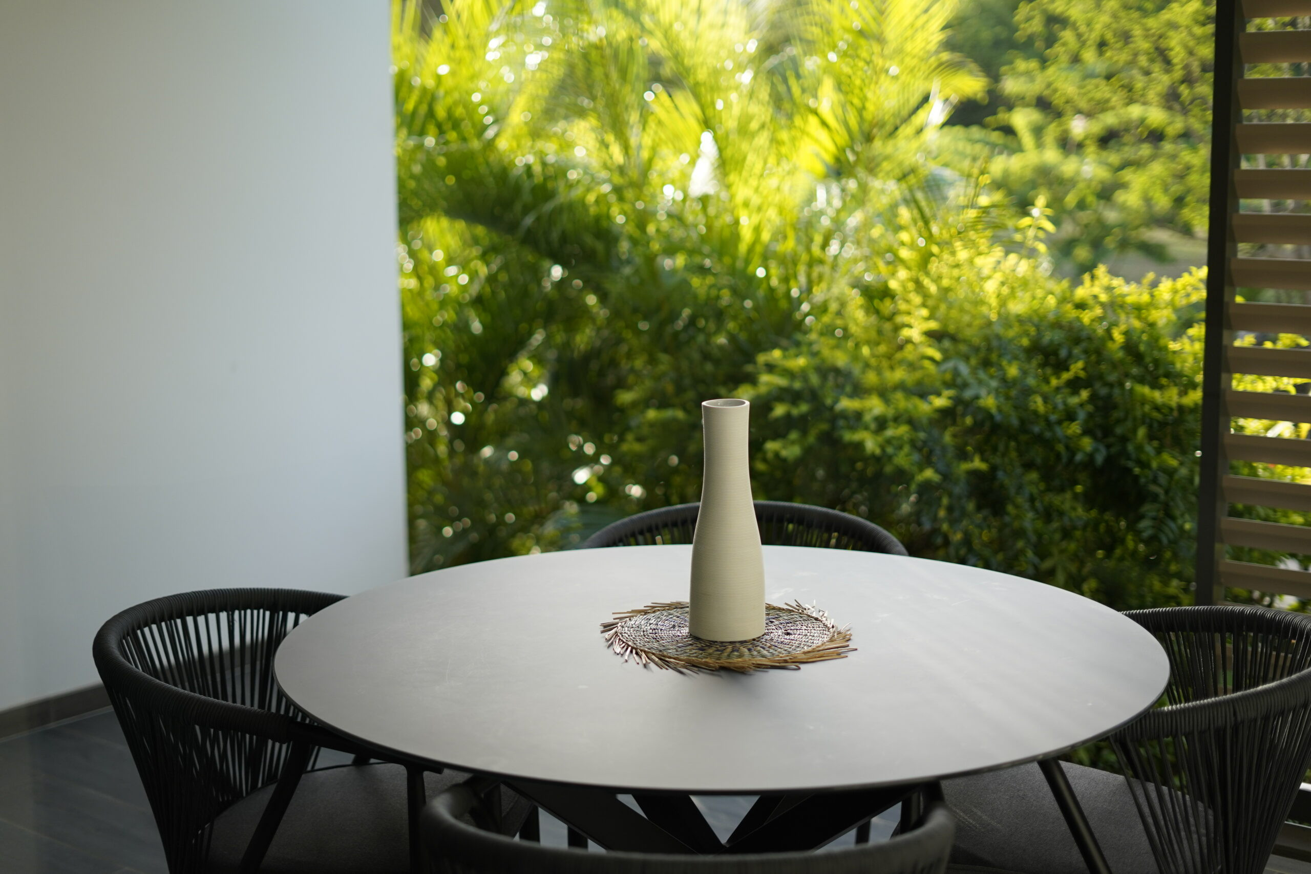 The apartment is tastefully-furnished, is modern, and is 49 m². It has views of the garden and the swimming pool.