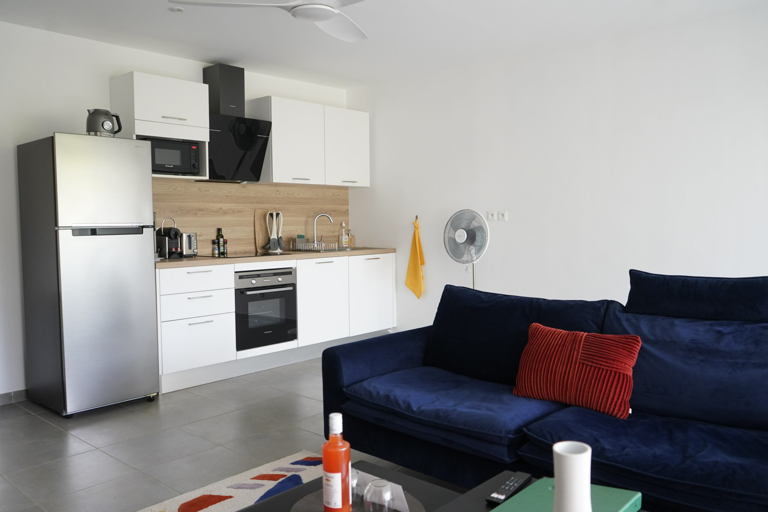 The apartment in Les Trois-Ilets has 1 bedrooms and has capacity for 2 people. The apartment is tastefully-furnished, is modern, and is 49 m². It has views of the garden and the swimming pool. The property is located 0 m from the airport, 100 m from Anse Mitan sand beach, 150 m from the the restaurant, 2 km from the city, 2 km from the supermarket. The house is situated in a family-friendly neighborhood next to the sea.The accommodation is equipped with the following items: garden furniture, 15 m² terrace, washing machine, dryer, iron, safe, internet (Wi-Fi), hair dryer, air-conditioned, communal swimming pool, open-air parking the same building, 1 TV.the kitchen, refrigerator, microwave, oven, freezer, dishwasher, dishes/cutlery, kitchen utensils and coffee machine are provided.