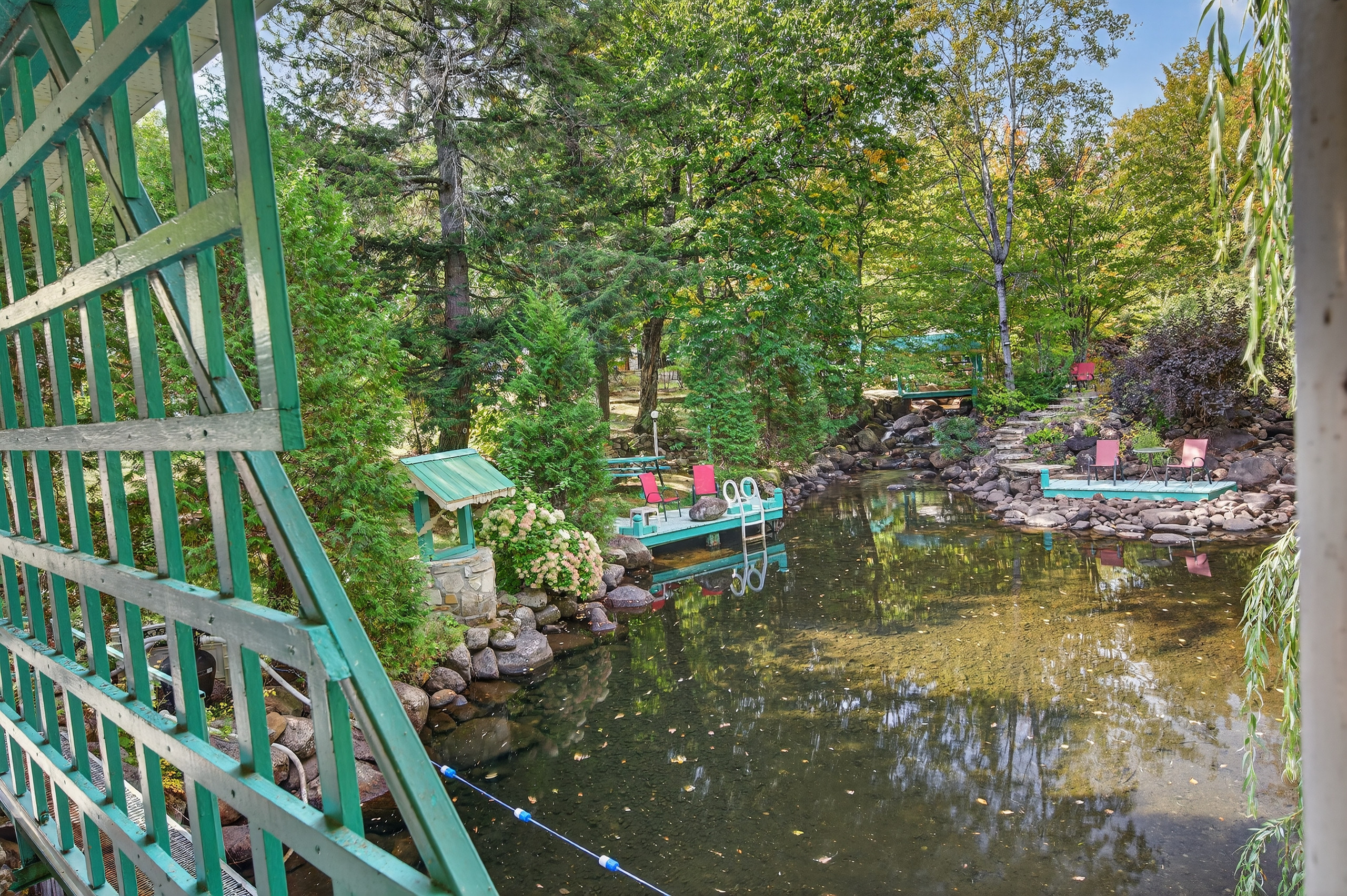 The outdoor areas are equally charming with a garden and a balcony offering magnificent views of the garden, the lake and the river. The private outdoor parking is an additional asset for travellers.