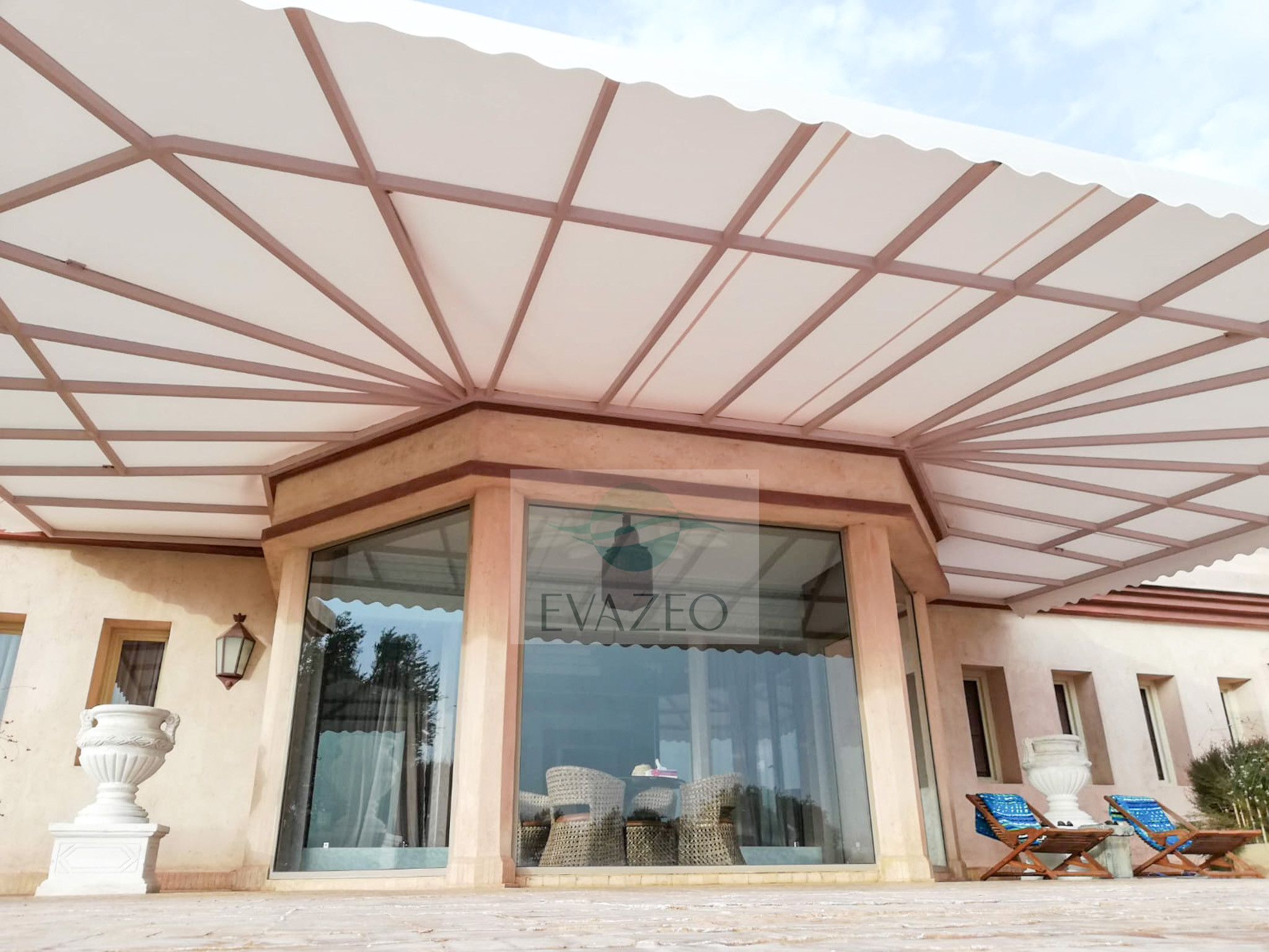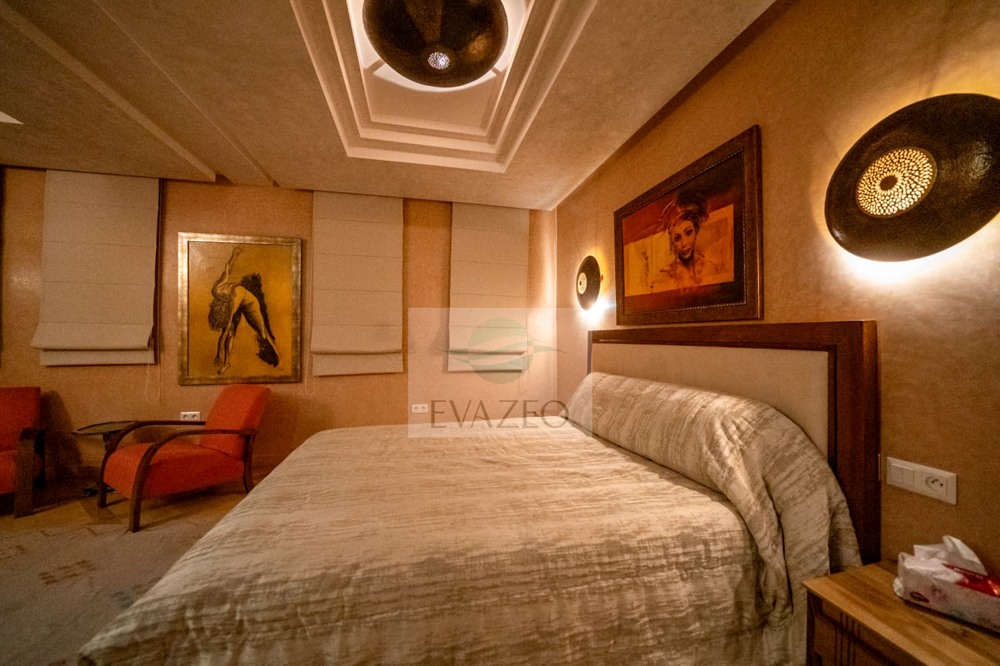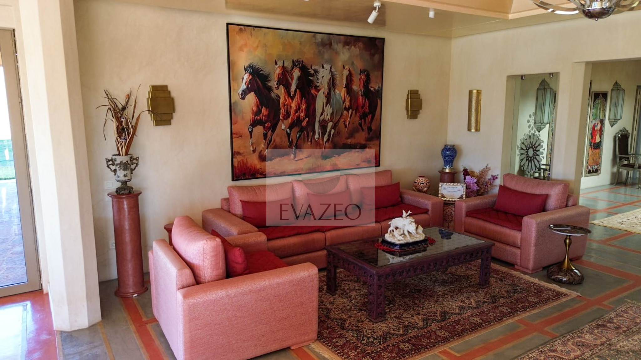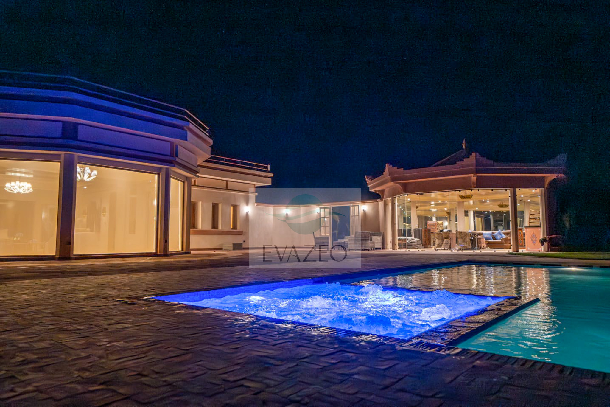 The estate offers 10 spacious suites spread across two private pavilions. Each villa has its own living space with a Moroccan lounge, European lounge, dining room, panoramic glazed veranda and large-screen TV. A major asset: each pavilion has its own adjacent private pool.