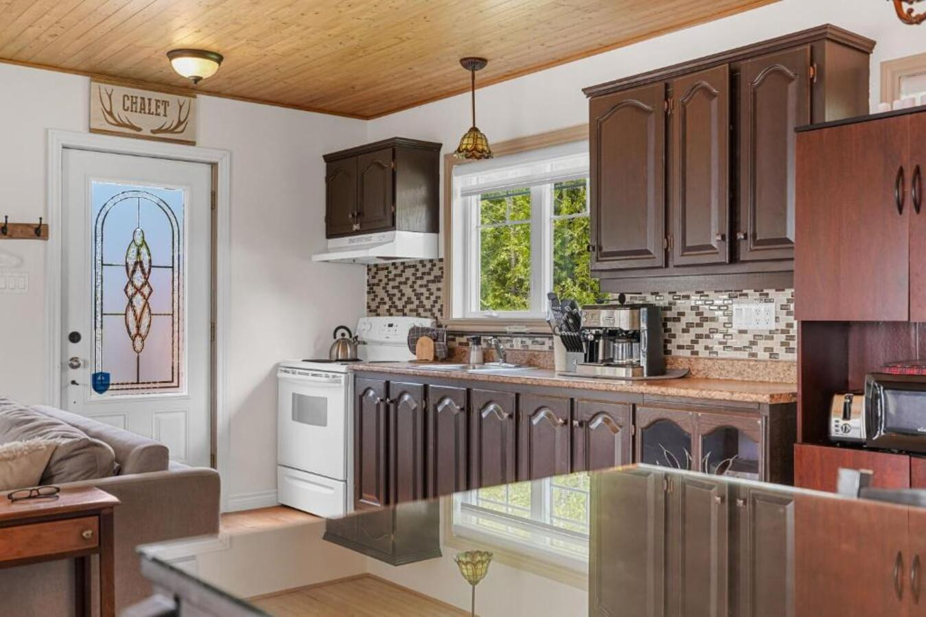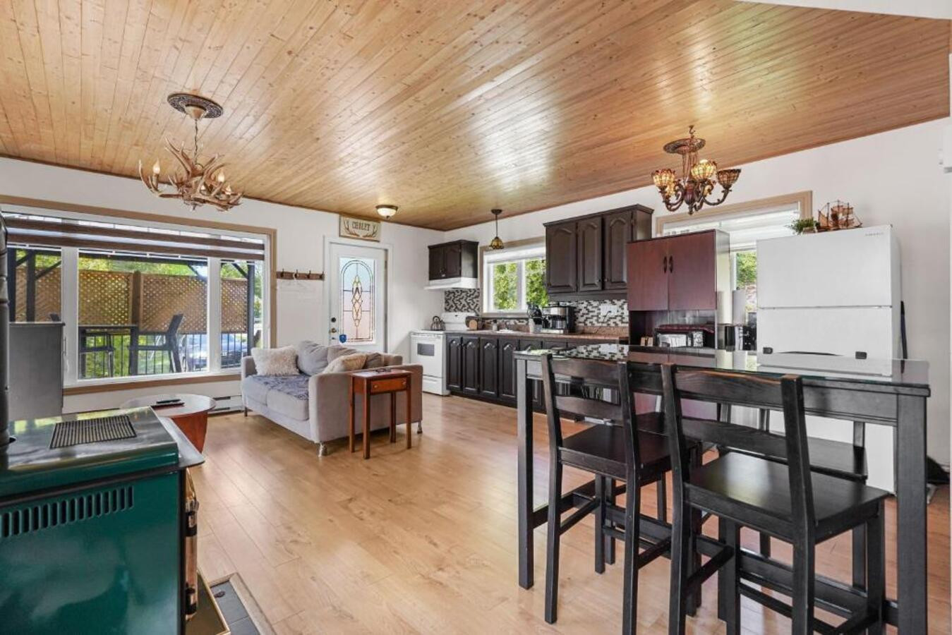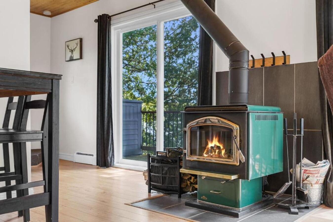The interior has been carefully furnished with taste, offering a friendly living space with a fully equipped open-plan kitchen. You will find all the necessary equipment: refrigerator, coffee machine, oven, dishwasher, microwave, crockery, toaster and kettle. The fireplace will bring a touch of character and warmth during your evenings.