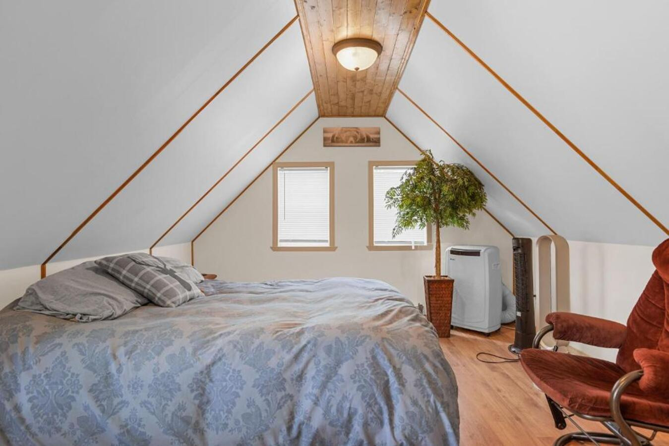 The room features a queen-size bed, complemented by two sofa beds for flexible sleeping arrangements. The bathroom with shower will meet your comfort needs. An air conditioning unit and WiFi are also at your disposal for a pleasant stay.