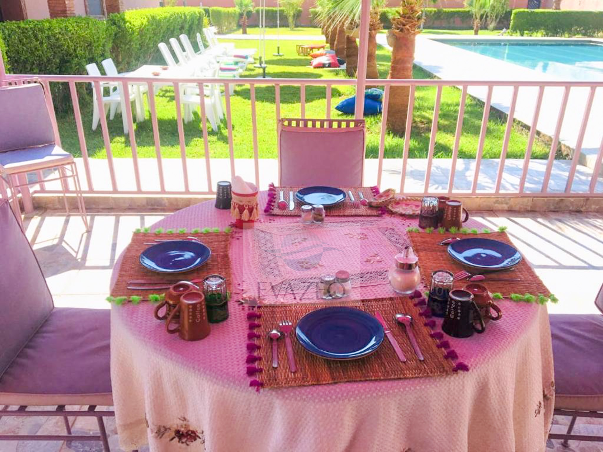 Enjoy the outdoor pool bordered by a lush garden, shaded terraces, and the absolute calm of the Moroccan countryside. Air conditioning, WiFi, on-site restaurant, and yoga classes complete the amenities. A moment of serenity at the gates of the ochre city, perfect for couples, families, or groups of friends.