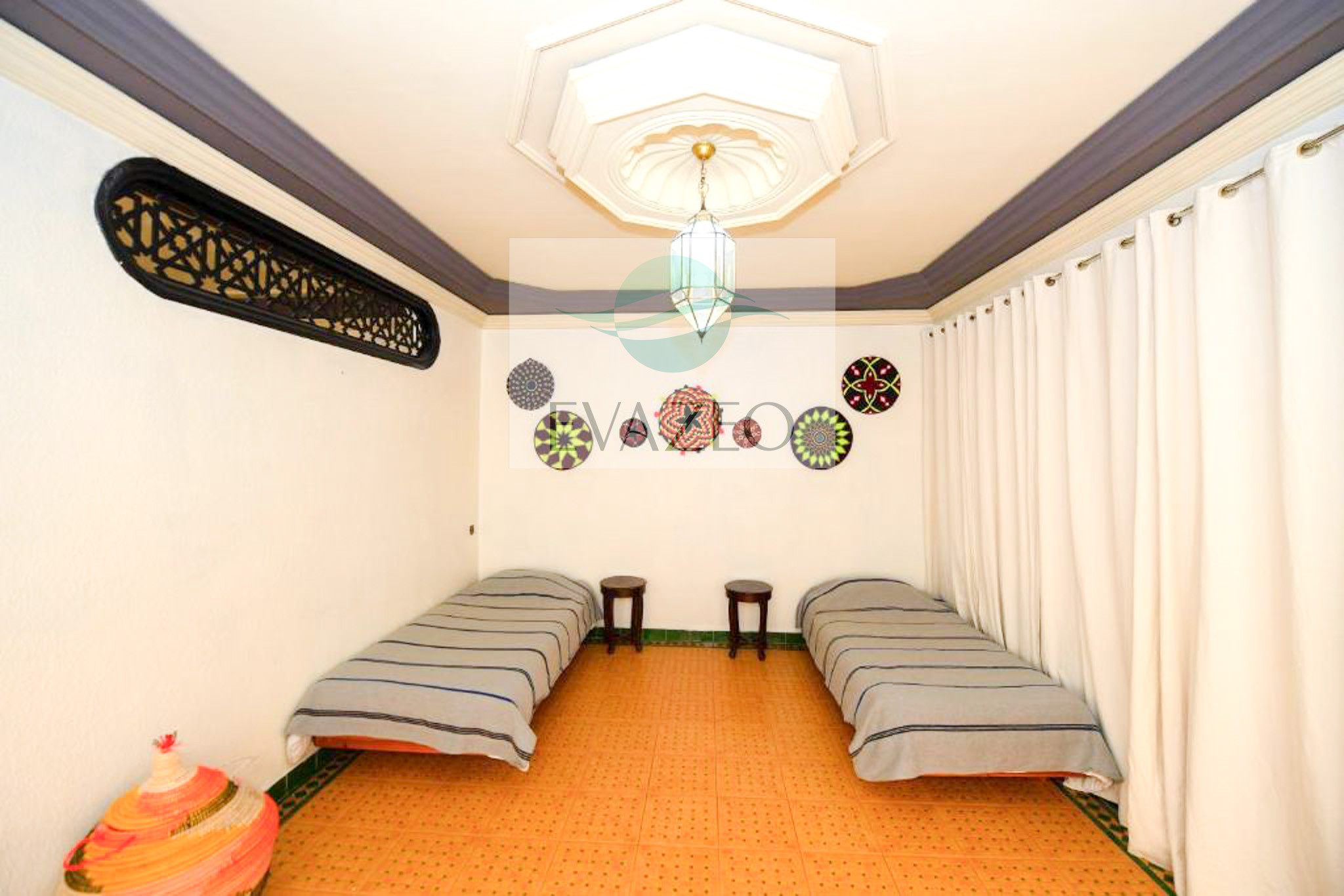 Nestled in the peaceful countryside of Souihla, just 17 km from Marrakech and the Menara Gardens, Riad Nasma welcomes you to an authentic green setting. This traditional guest house offers 3 rooms and 4 spacious suites ranging from 30 to 80 m², as well as a private villa with a pool that can accommodate up to 12 people.