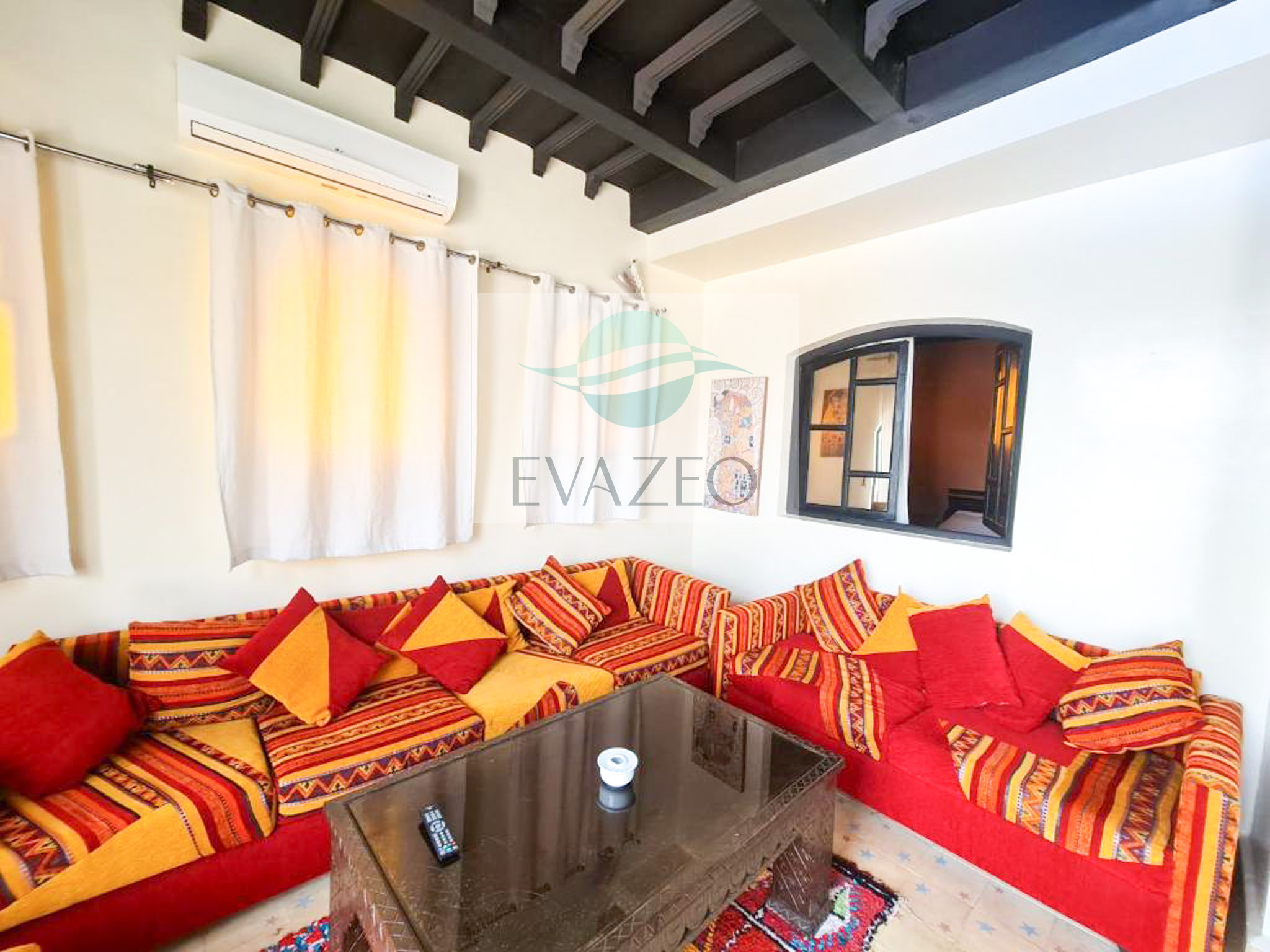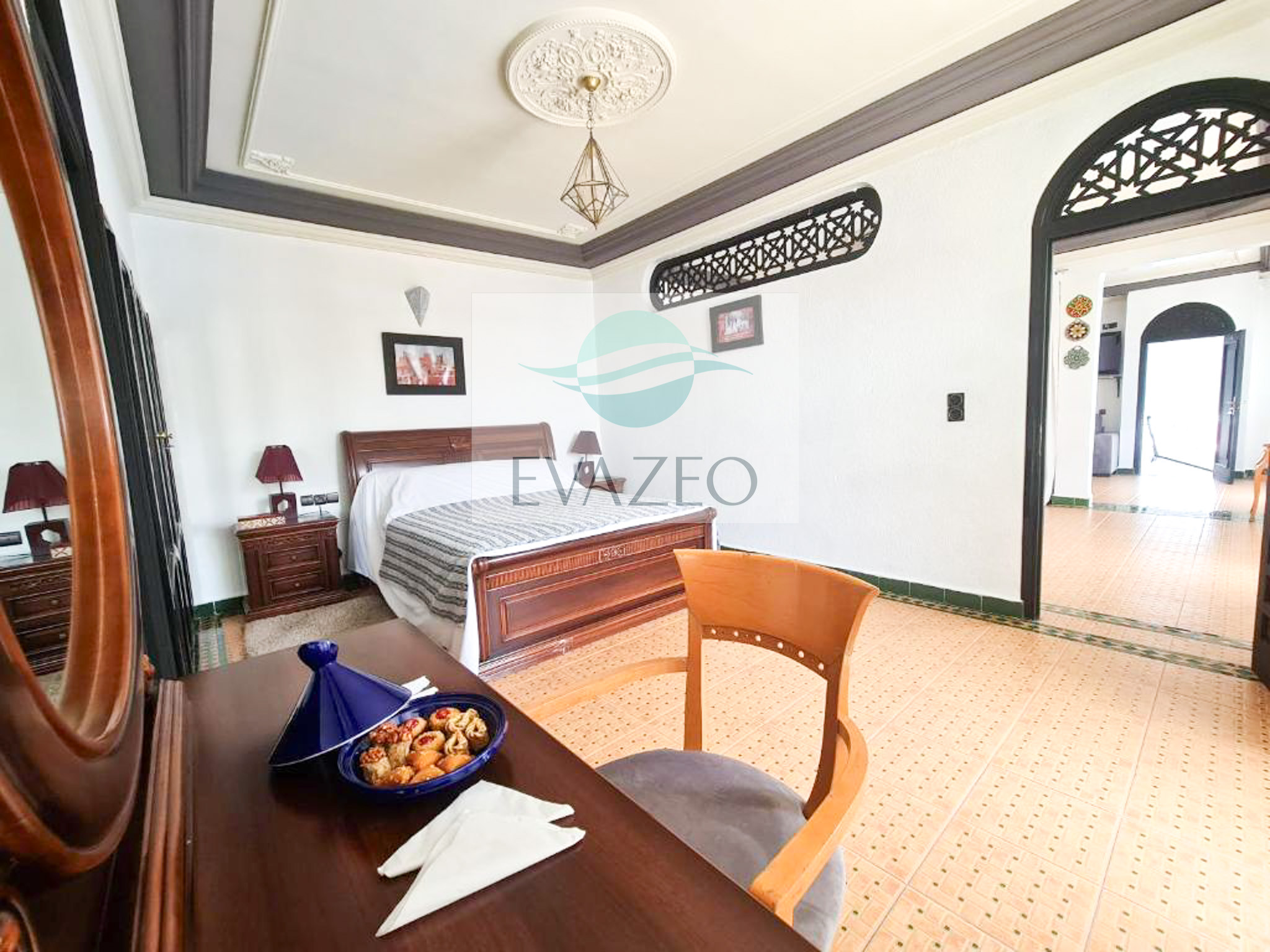 Generous living space with traditional Moroccan decor