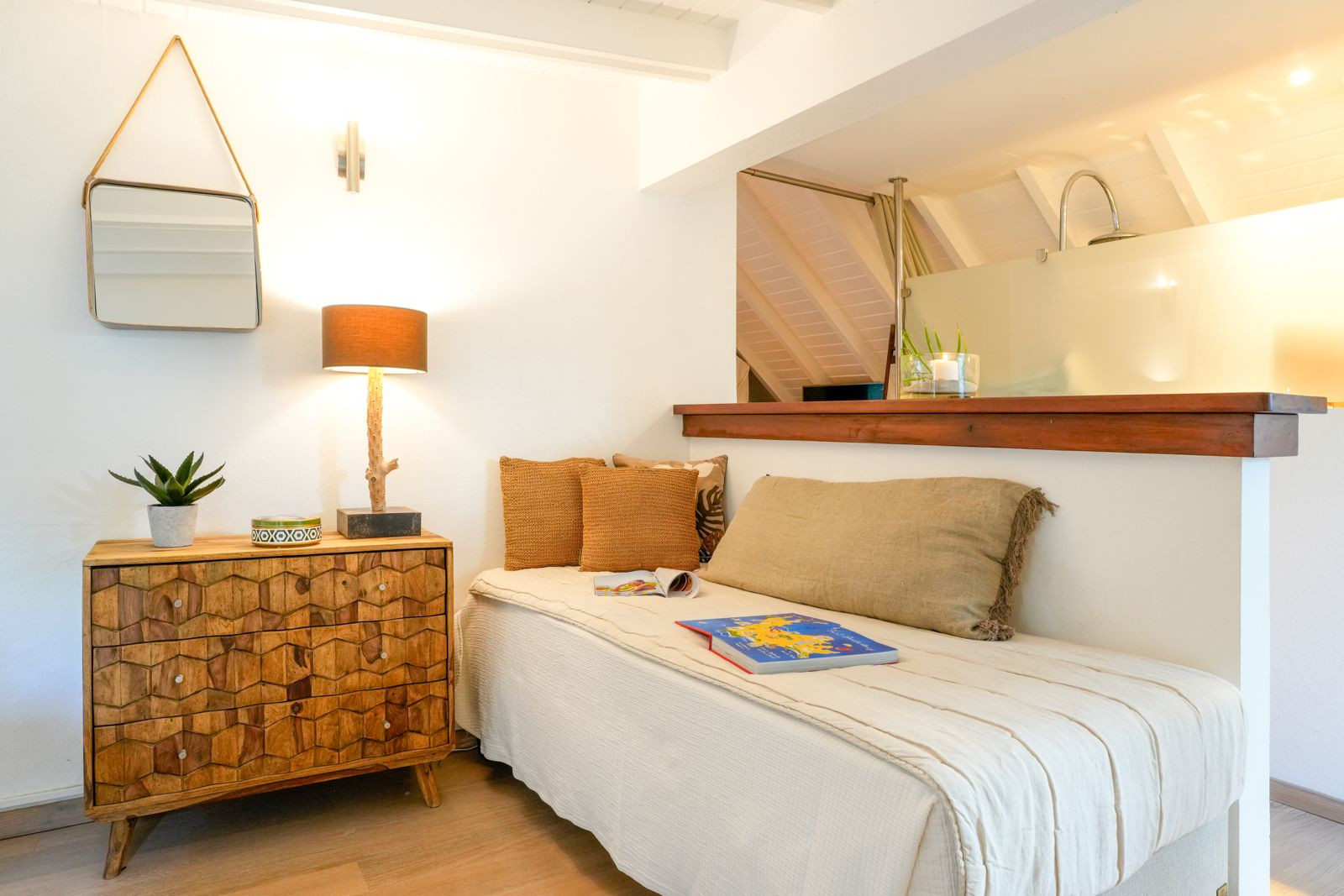 Discover Lodge Kaz in Sucre, a peaceful haven located in Saint Barthélemy, nestled in a calm and bright environment immediately close to the sea. This intimate 50m² rental offers an elegant and carefully furnished setting, perfect for a romantic stay or a rejuvenating rest.