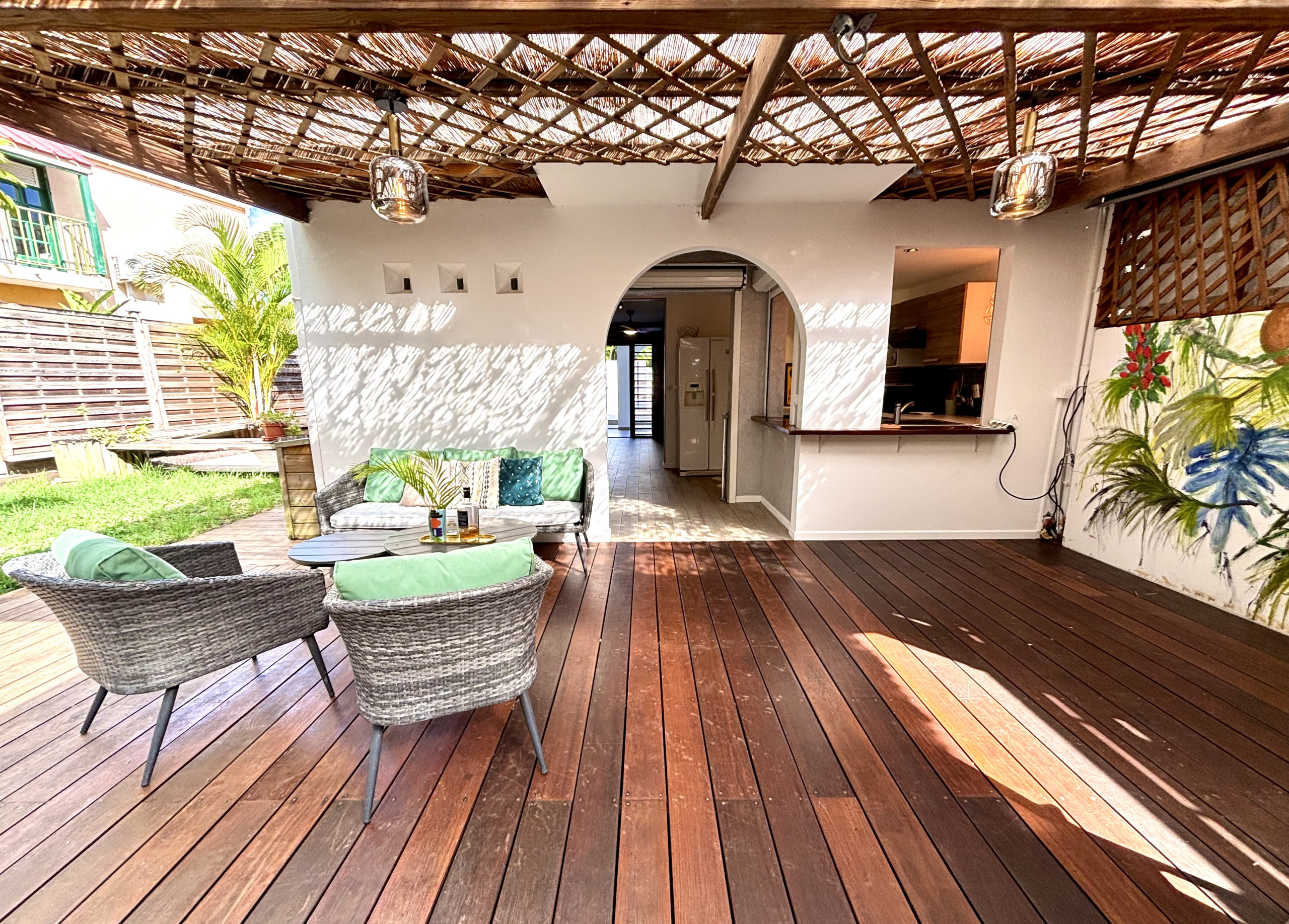 Located just 500 metres from the sandy beach, the town and restaurants, the Sybelle villa offers a strategic location to fully enjoy the attractions of Diamant. Groups of friends will be delighted with this friendly and well-thought-out rental.