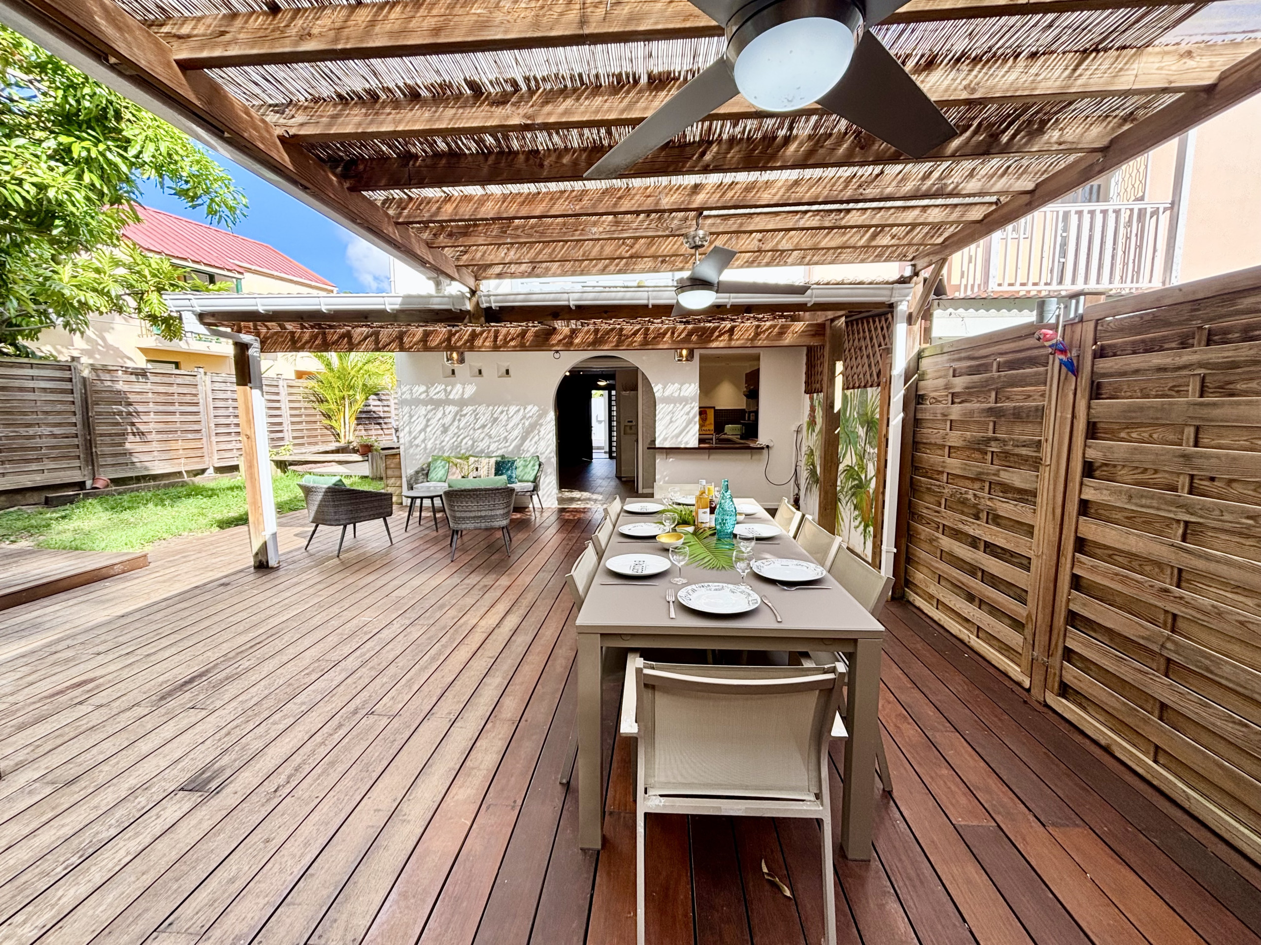 Discover Villa Sybelle, a perfect accommodation for a holiday with friends in Diamant, Martinique. This spacious 100m² villa offers an ideal setting for a friendly and relaxing stay, with accommodation capacity for up to 8 people.