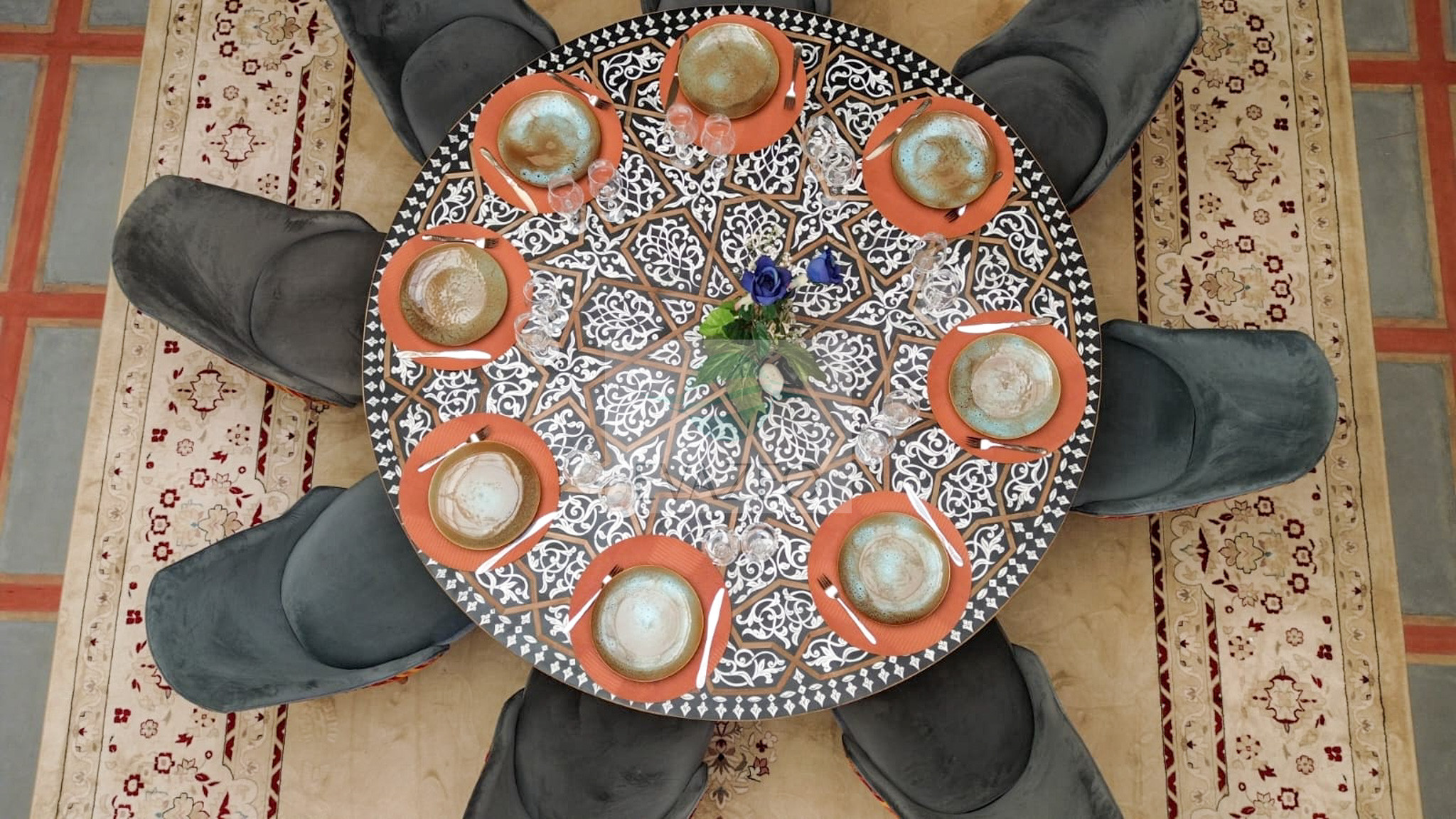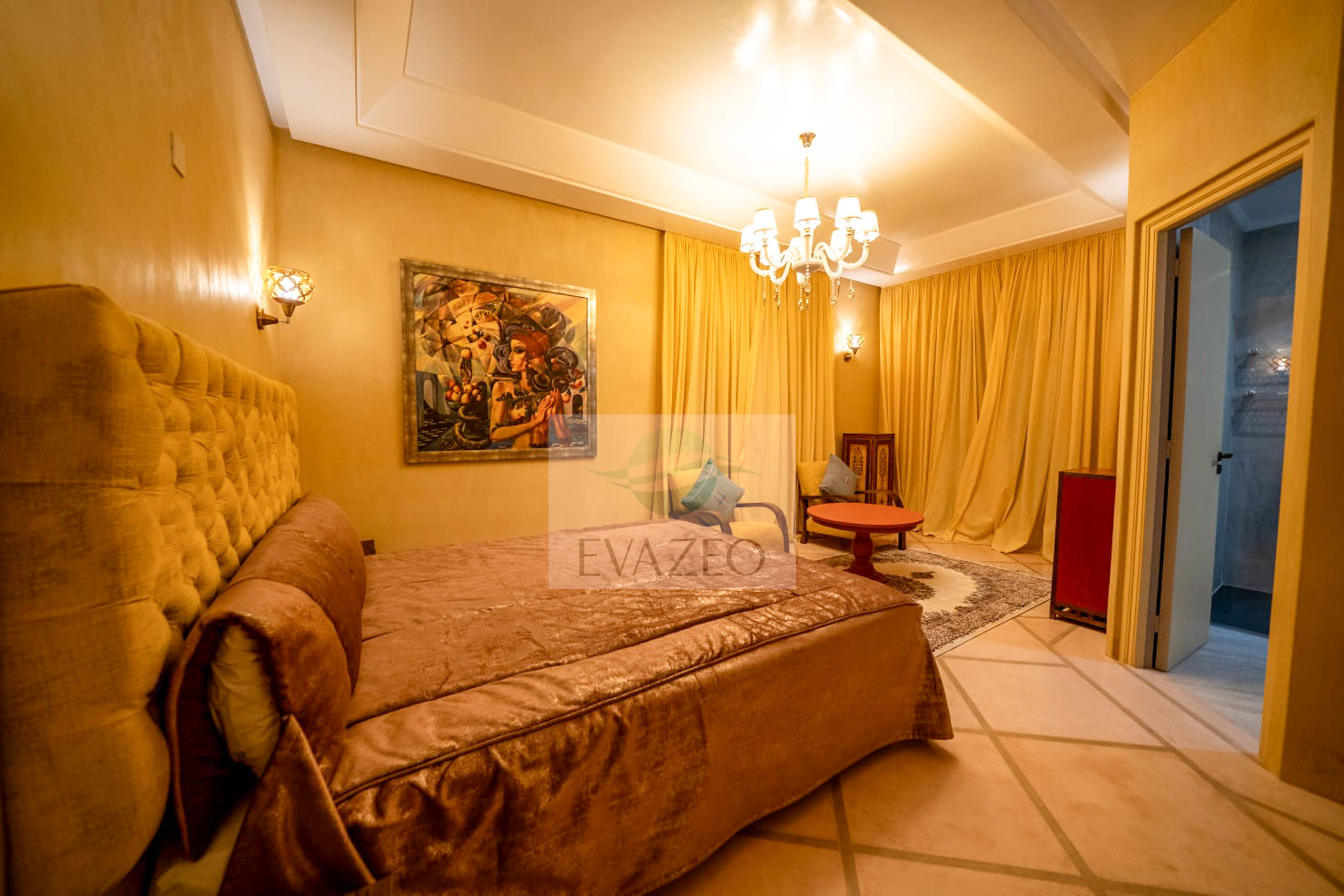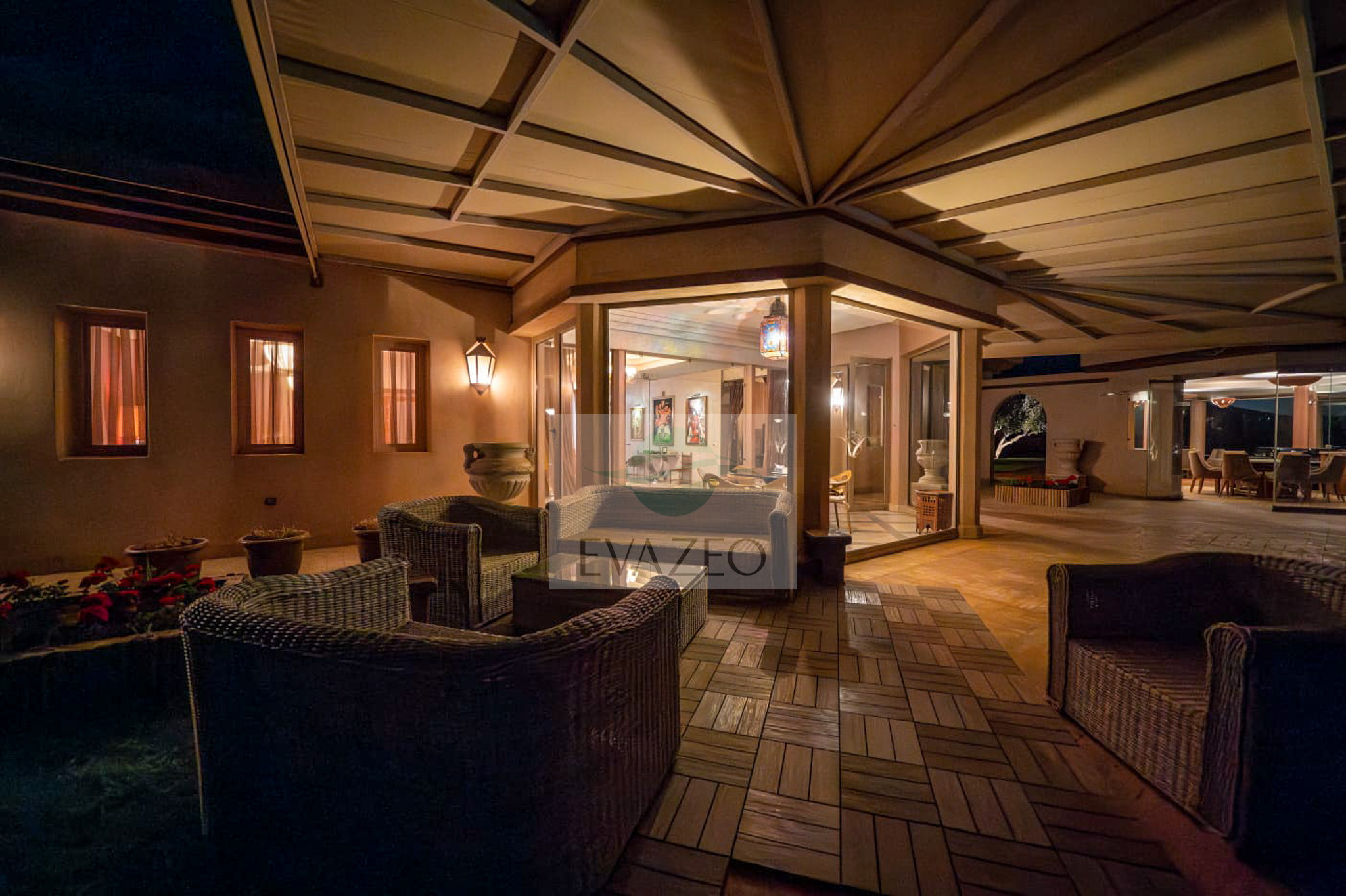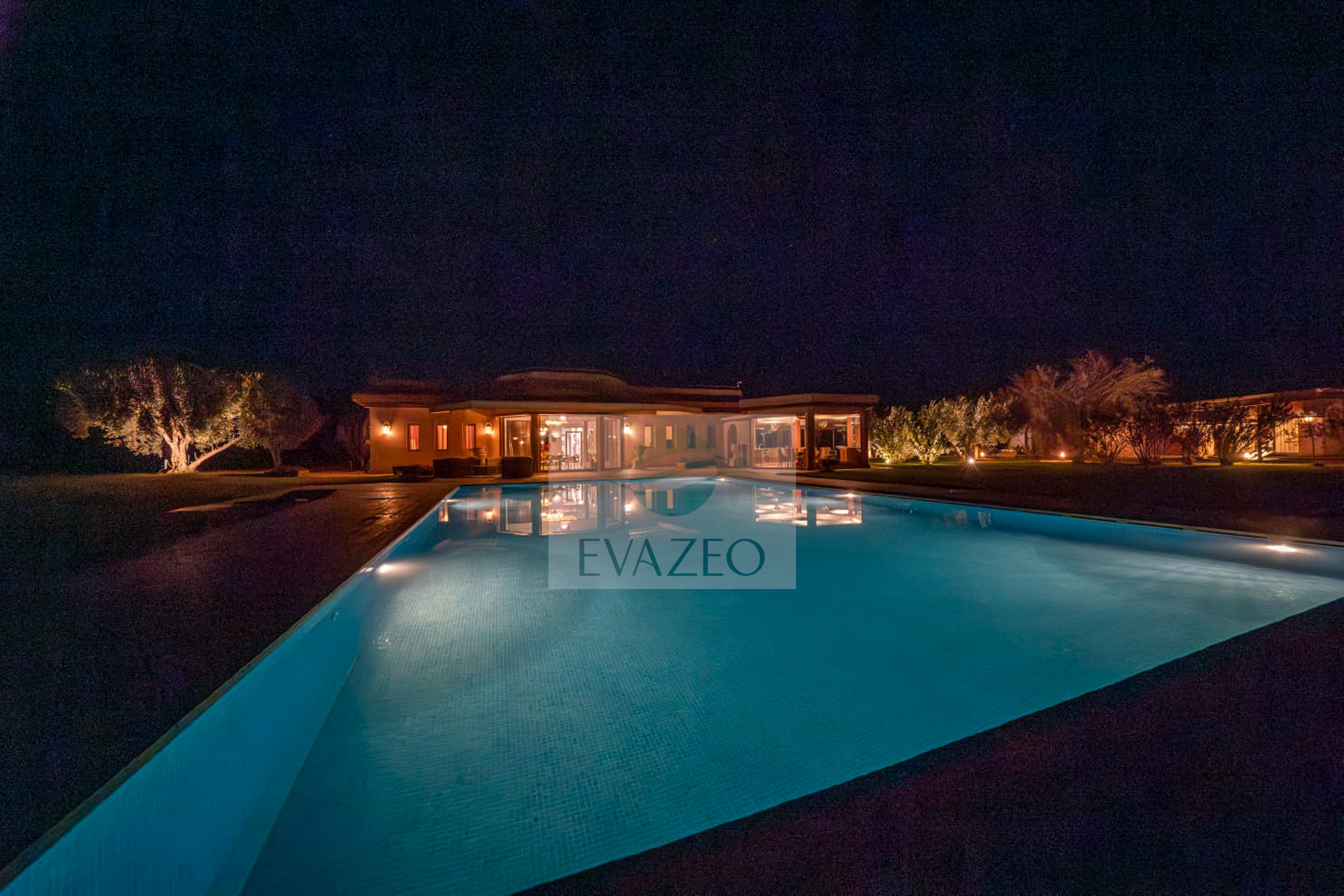 Enjoy generous living spaces: traditional Moroccan living room with fireplace and large TV screen, European living room, glazed winter lounge offering a panoramic view of the estate, fully equipped dining room and kitchen. A 24/7 guarded haven of peace, with no neighbourhood.