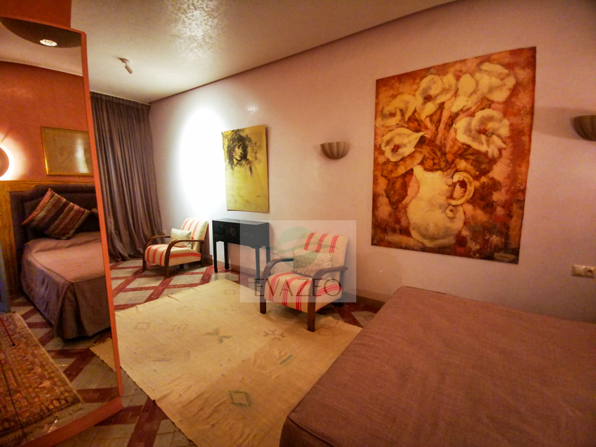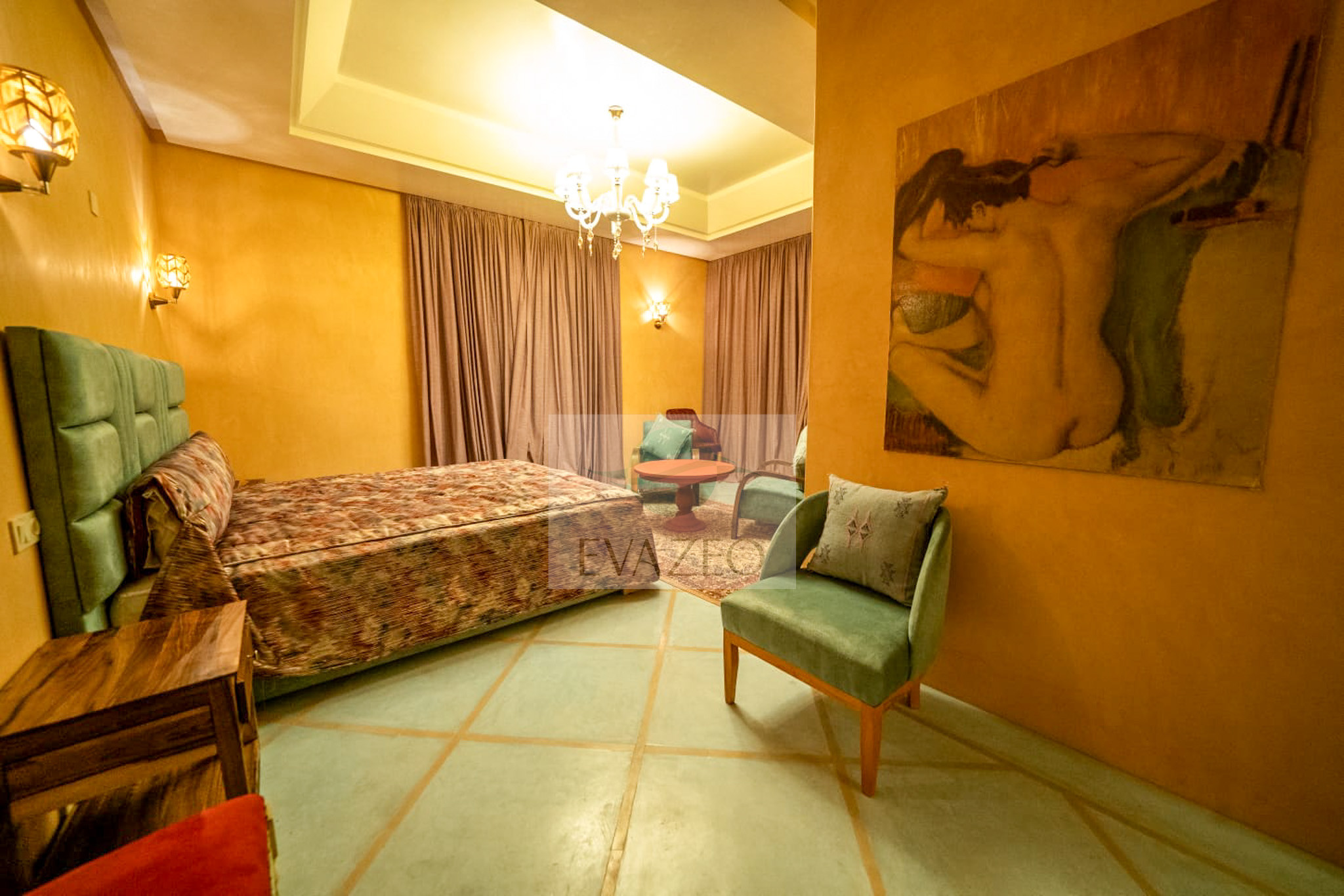 Nestled in the heart of a private 18-hectare estate 20 km from Marrakech on the Fès road, Villa Solana welcomes you in an exceptional setting. This characterful property offers 5 luxurious suites, each equipped with air conditioning, private shower room, safe, dressing room and direct access to the gardens.