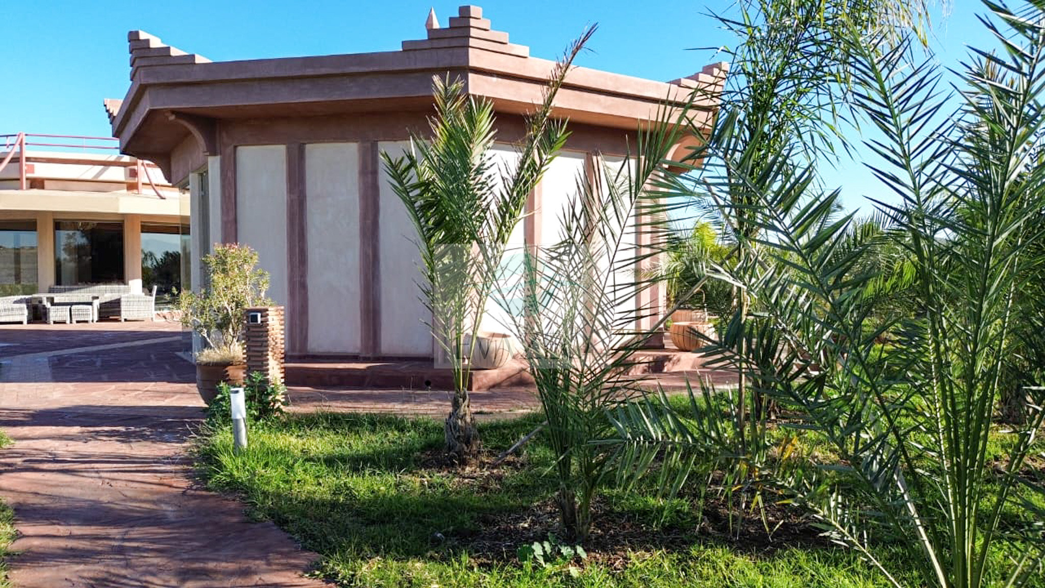 Rent Villa Solana in Marrakech: 5 luxury suites, private 16x8m swimming pool, golf and tennis access, hammam. 24/7 secured domain. Up to 10 people.