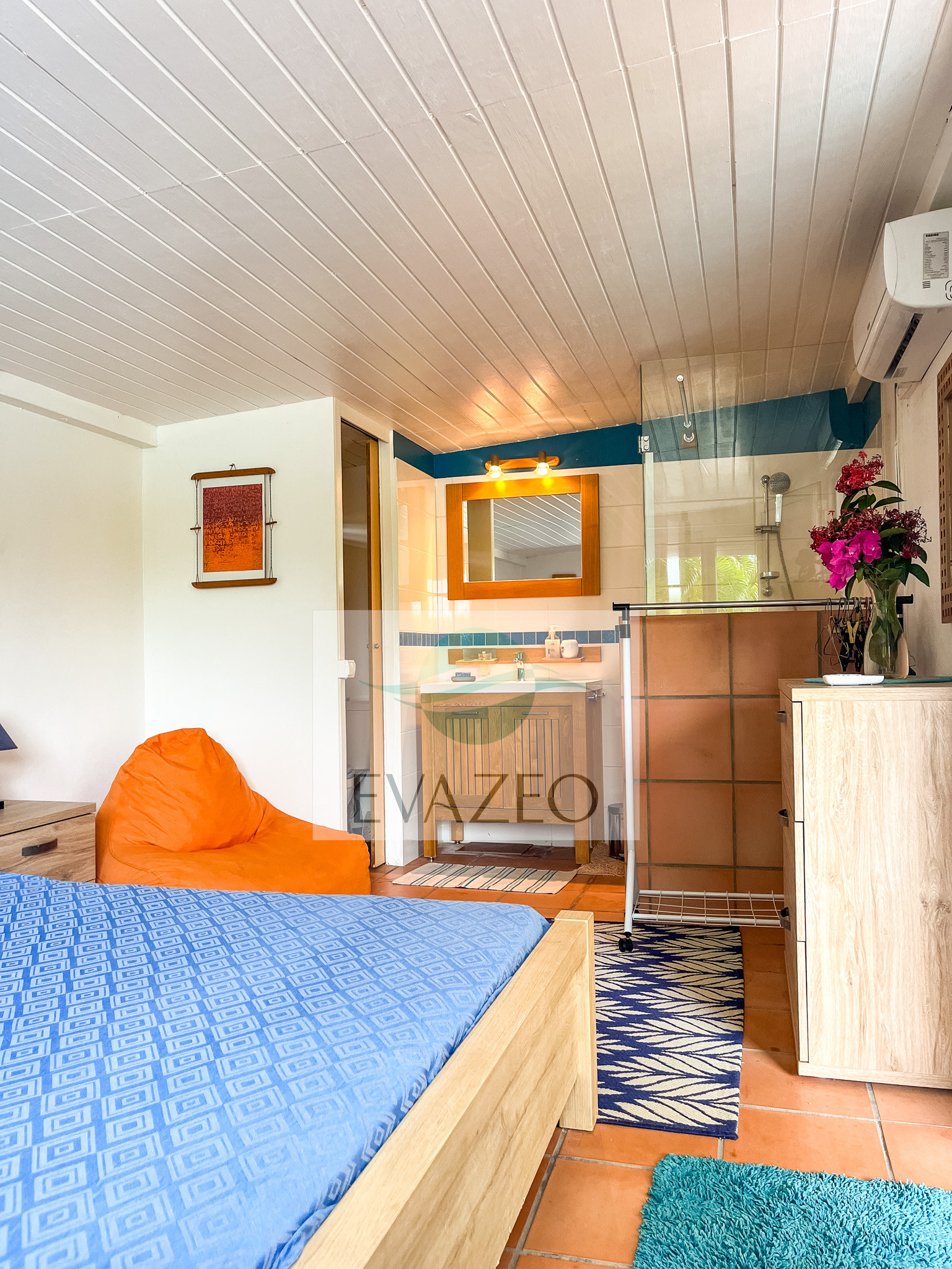 Composition: 2x bedroom with airconditionning, 2x bathroom, living room with air conditionning and 2 individual beds for teenagers, fully equipped kitchen, garden, swimming pool.