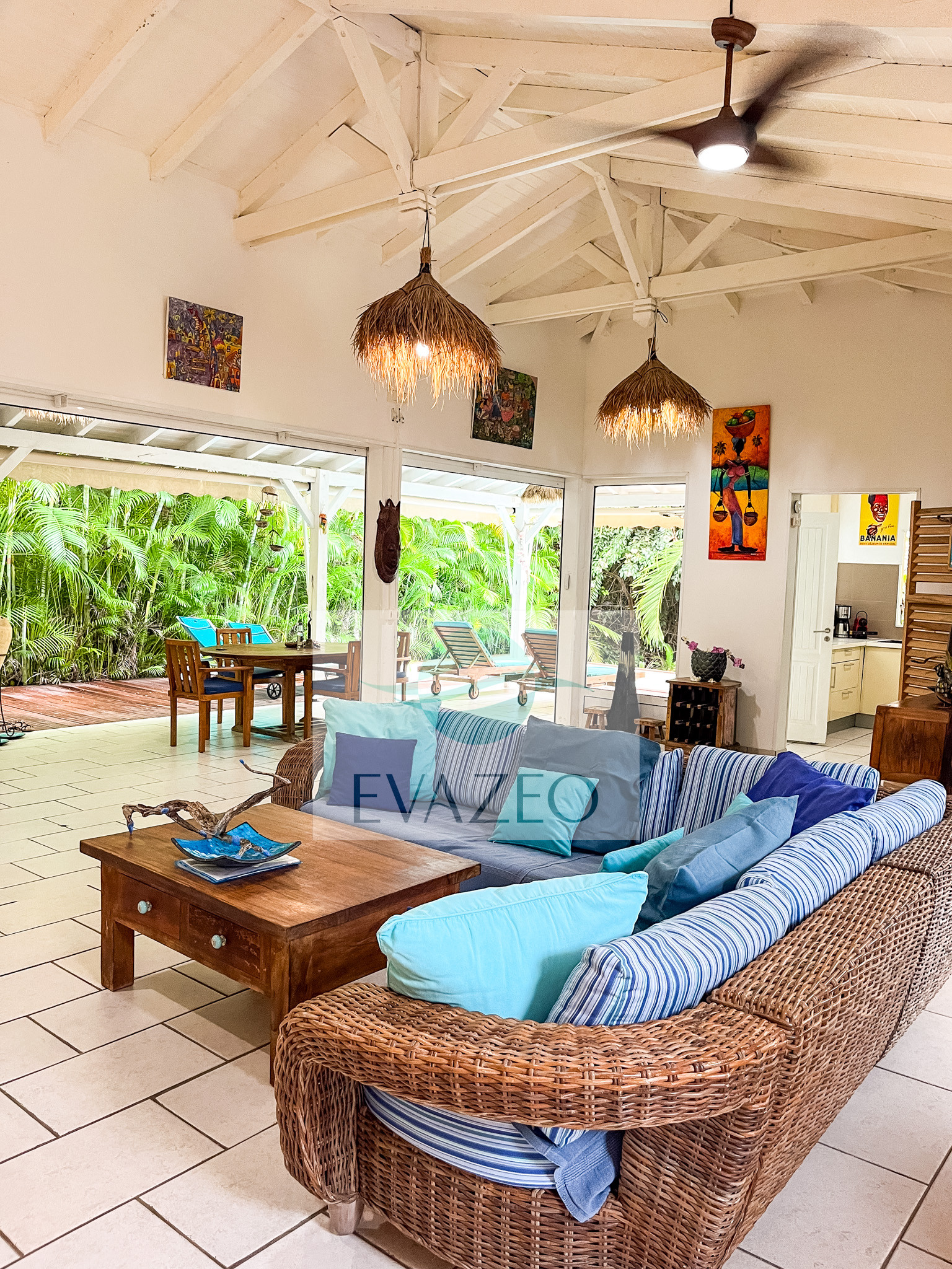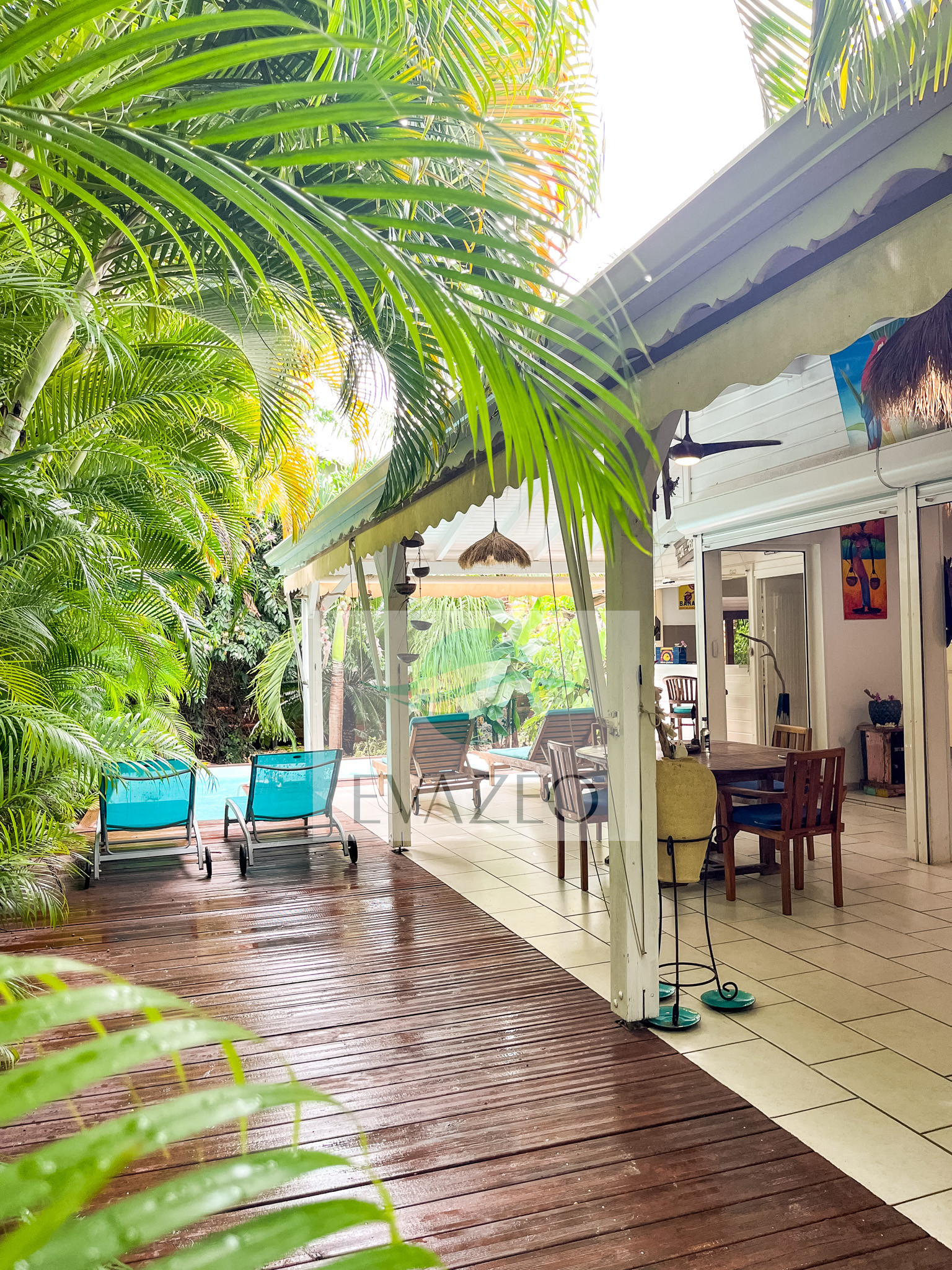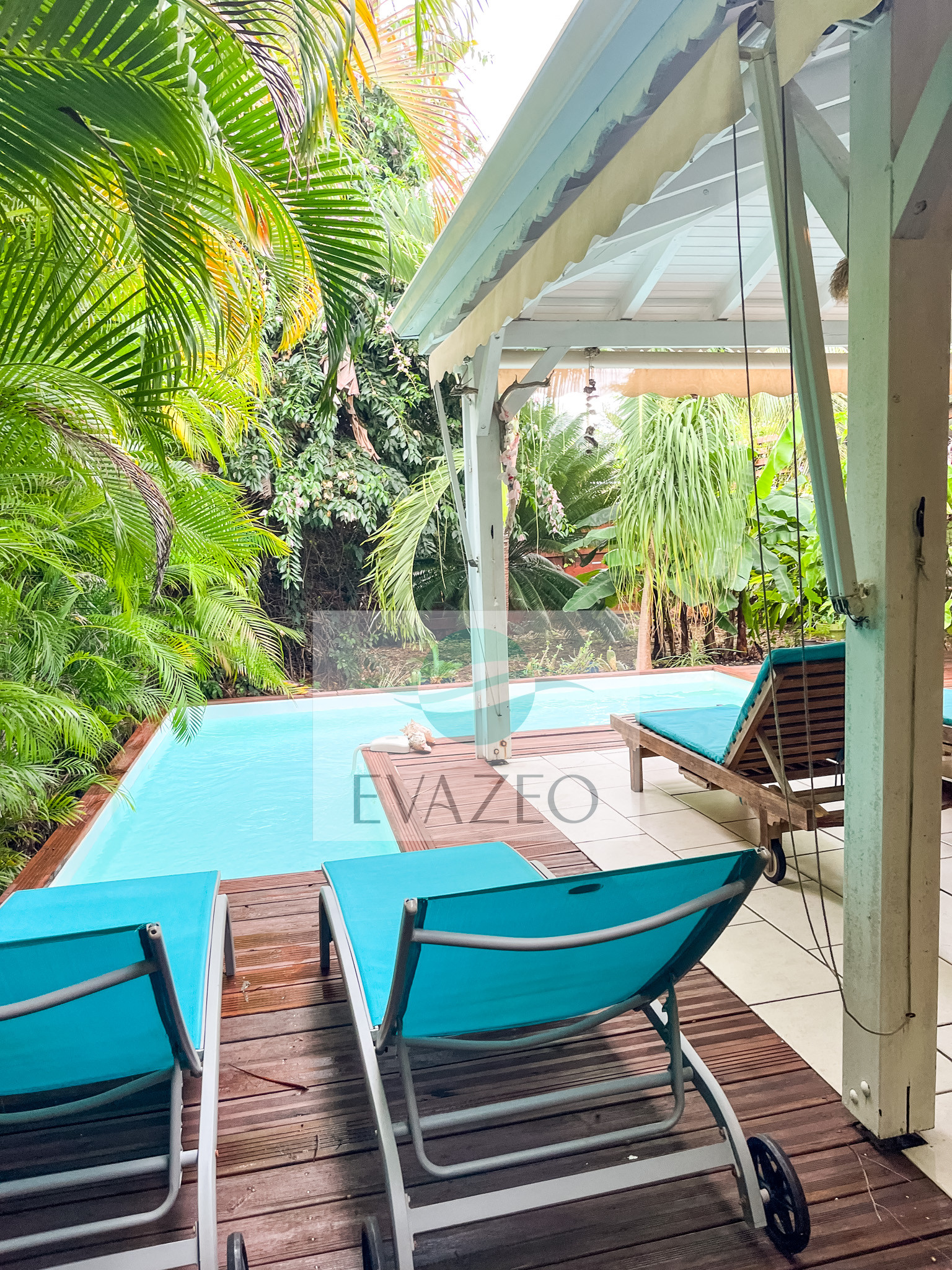 Very lovely house, classified as a 4**** tourist accommodation, ideally located in the commune of Saint François near the beach and city centre. This villa, nestled in the greenery, has been equipped and decorated to provide its occupants with a warm and comfortable atmosphere. The beautiful tropical garden, very peaceful, as well as the swimming pool and barbecue will guarantee a change of scenery, privacy and conviviality with family or friends.
