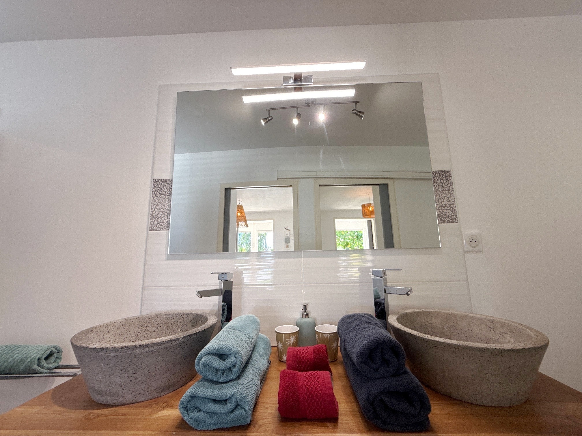 • 2 other air-conditioned bedrooms, one equipped with a 160 bed and the other with a 140 bed