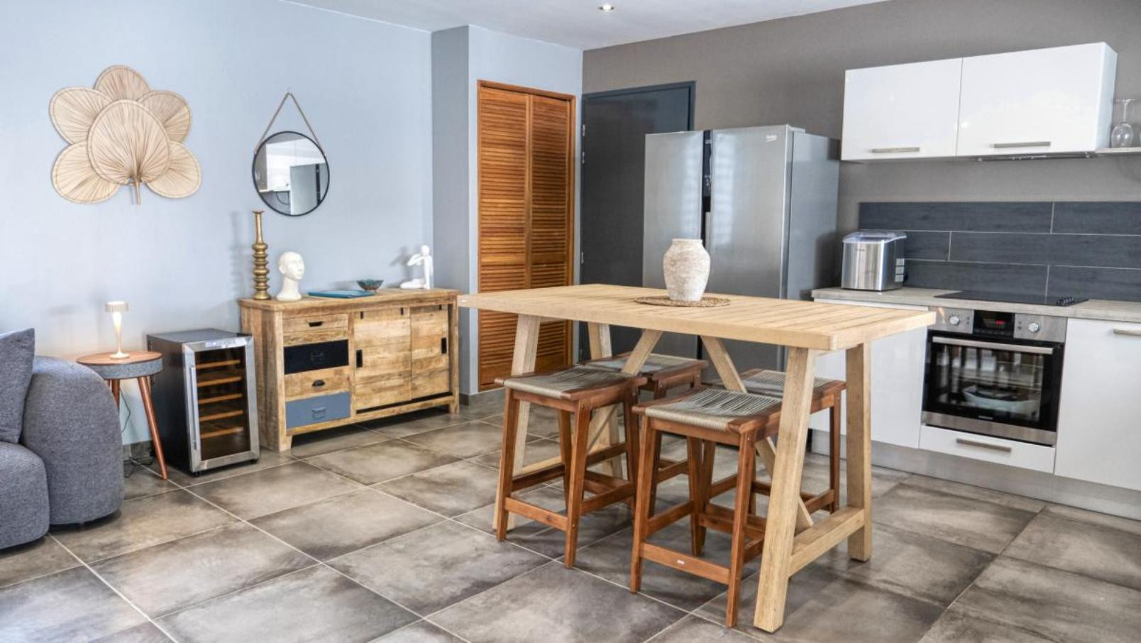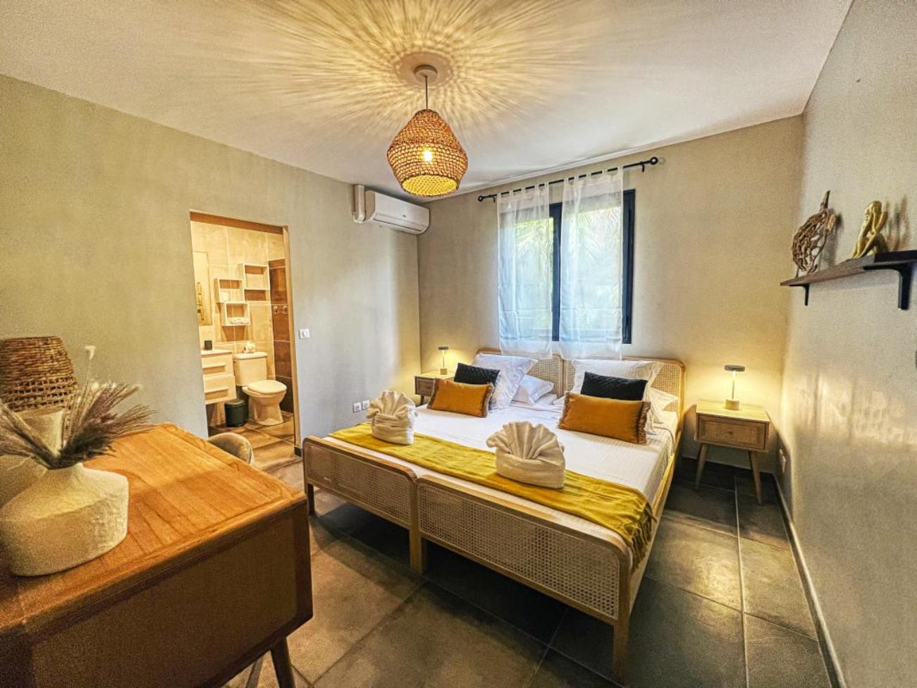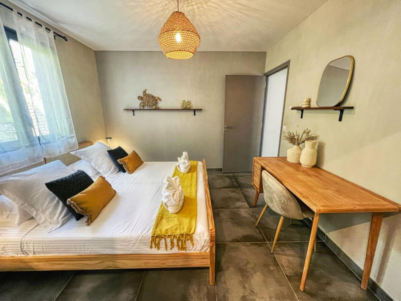 A very nice beach is at about 5 walking minutes and the city center of Sainte Anne with all its shops, bars, restaurants at about 5 kms by car.