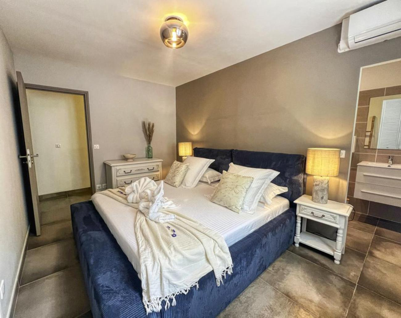 one of the rooms is a master suite that can accommodate 1 adult or 2 children on a sofa bed, and with a large walk-in wardrobe,