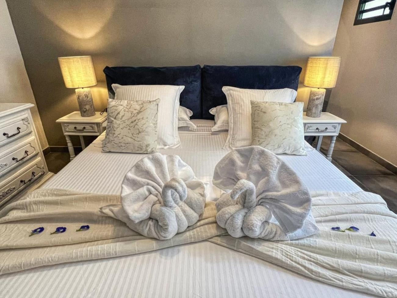 The villa has 3 air-conditioned bedrooms with double beds,