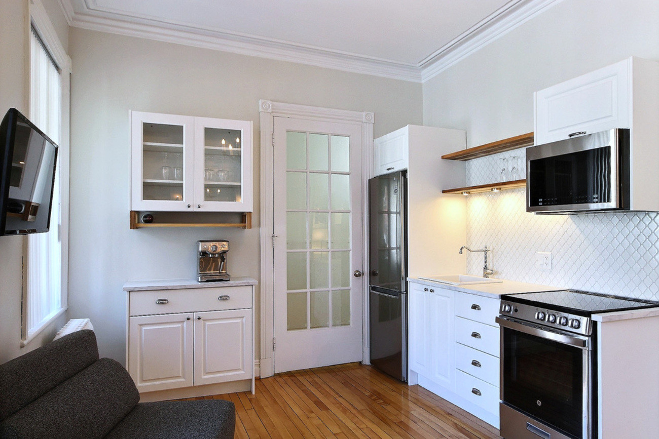 L'appartement dispose d'une chambre confortable avec un lit king size et un lit d'appoint, garantissant un sommeil paisible pour tous. La cuisine américaine entièrement équipée séduira les amateurs de cuisine, avec ses équipements modernes incluant une plaque à induction, un réfrigérateur, un congélateur, un four, un micro-ondes, et même une machine à café.