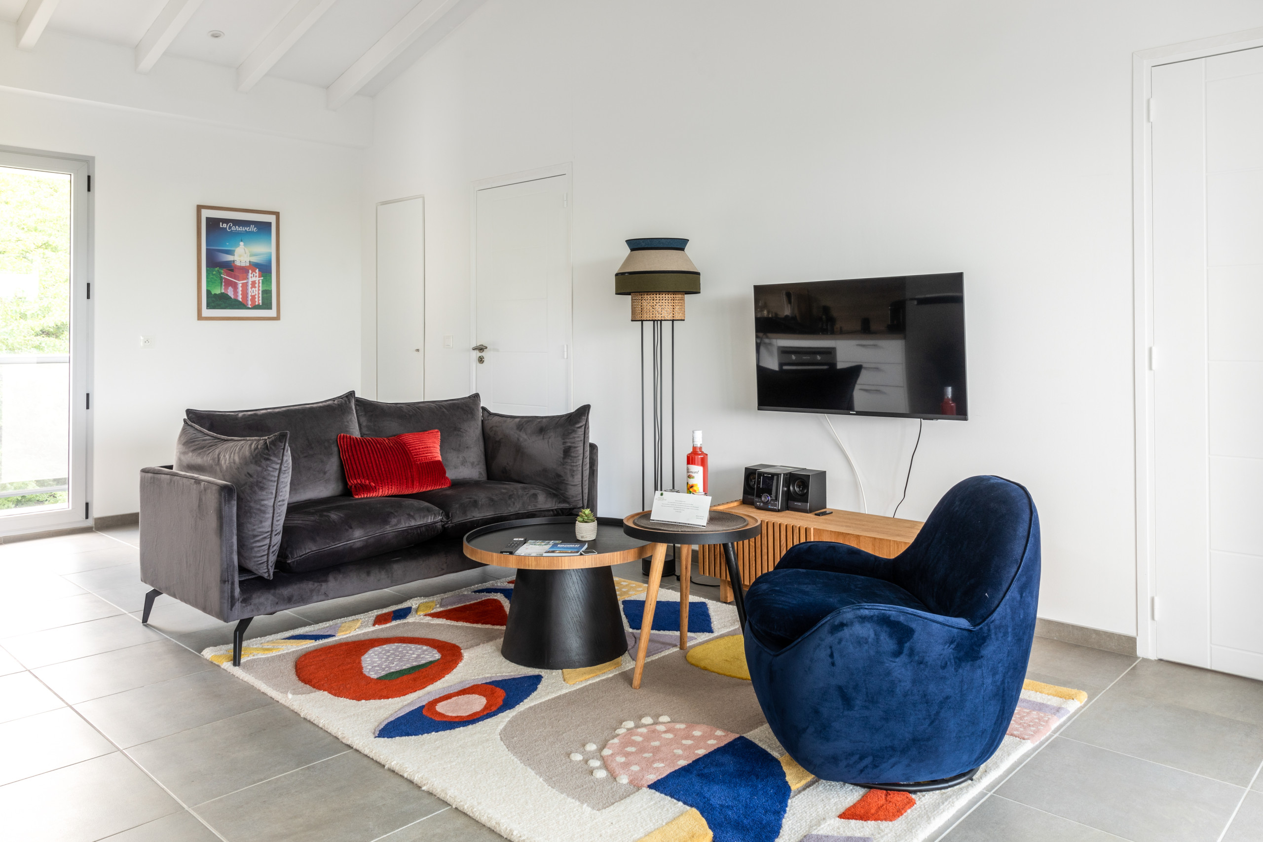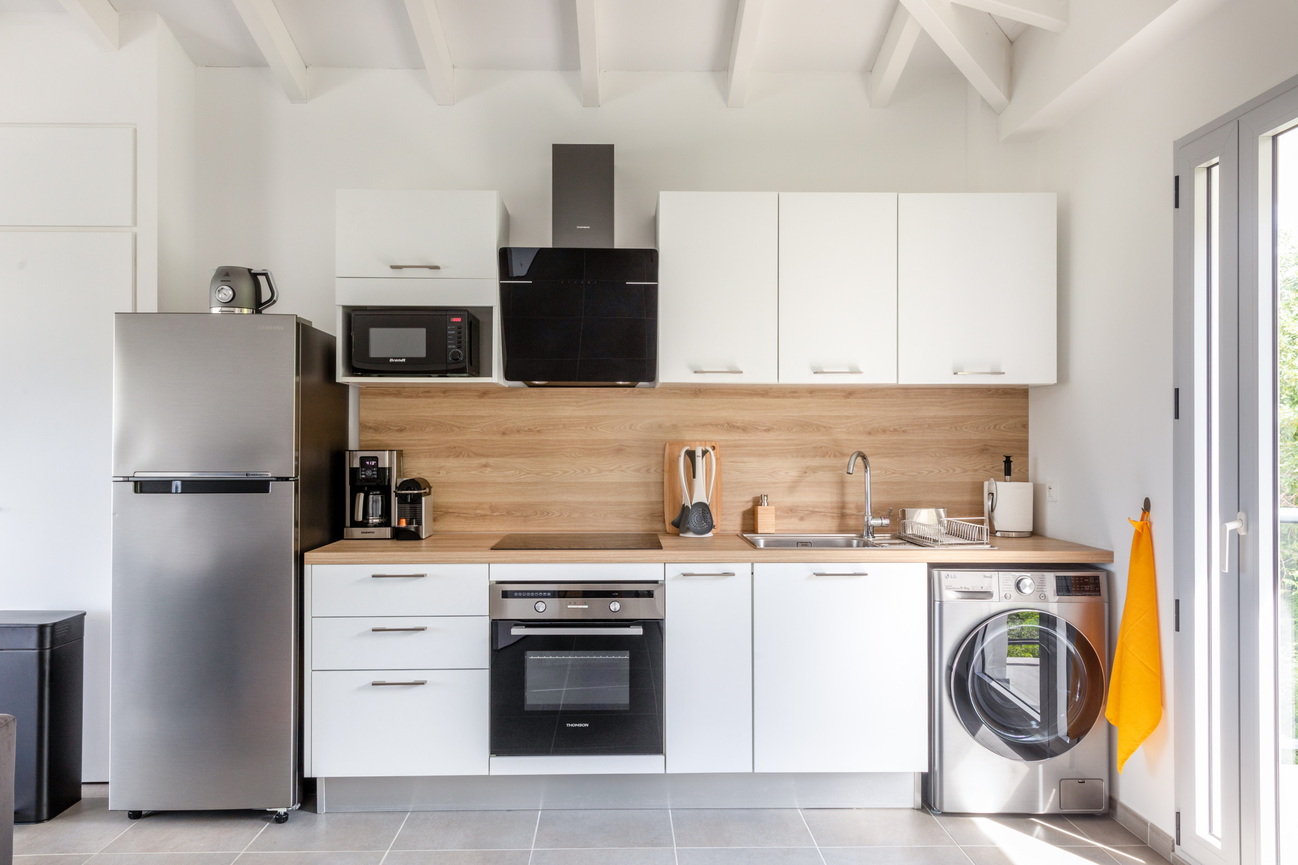 Le logement se compose d’une chambre climatisée avec salle de bain attenante (douche et WC), d’un séjour lumineux équipé d’une télévision connectée et d’une connexion internet, et d’une cuisine aménagée avec four, réfrigérateur et lave-linge.
