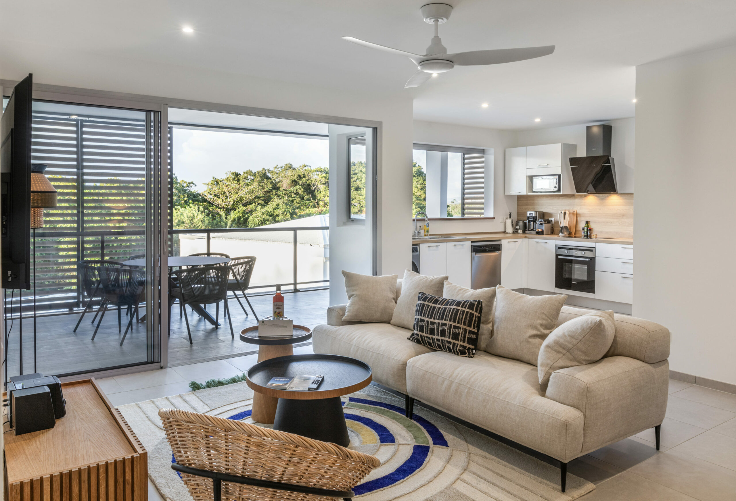 Située dans la villa la plus élevée d’un ensemble de trois habitations, PITAYA CARAÏBES logement de 85 m2 dont 40 m2 de terrasse, occupe le niveau R+1, vous garantissant une vue imprenable sur la baie.
