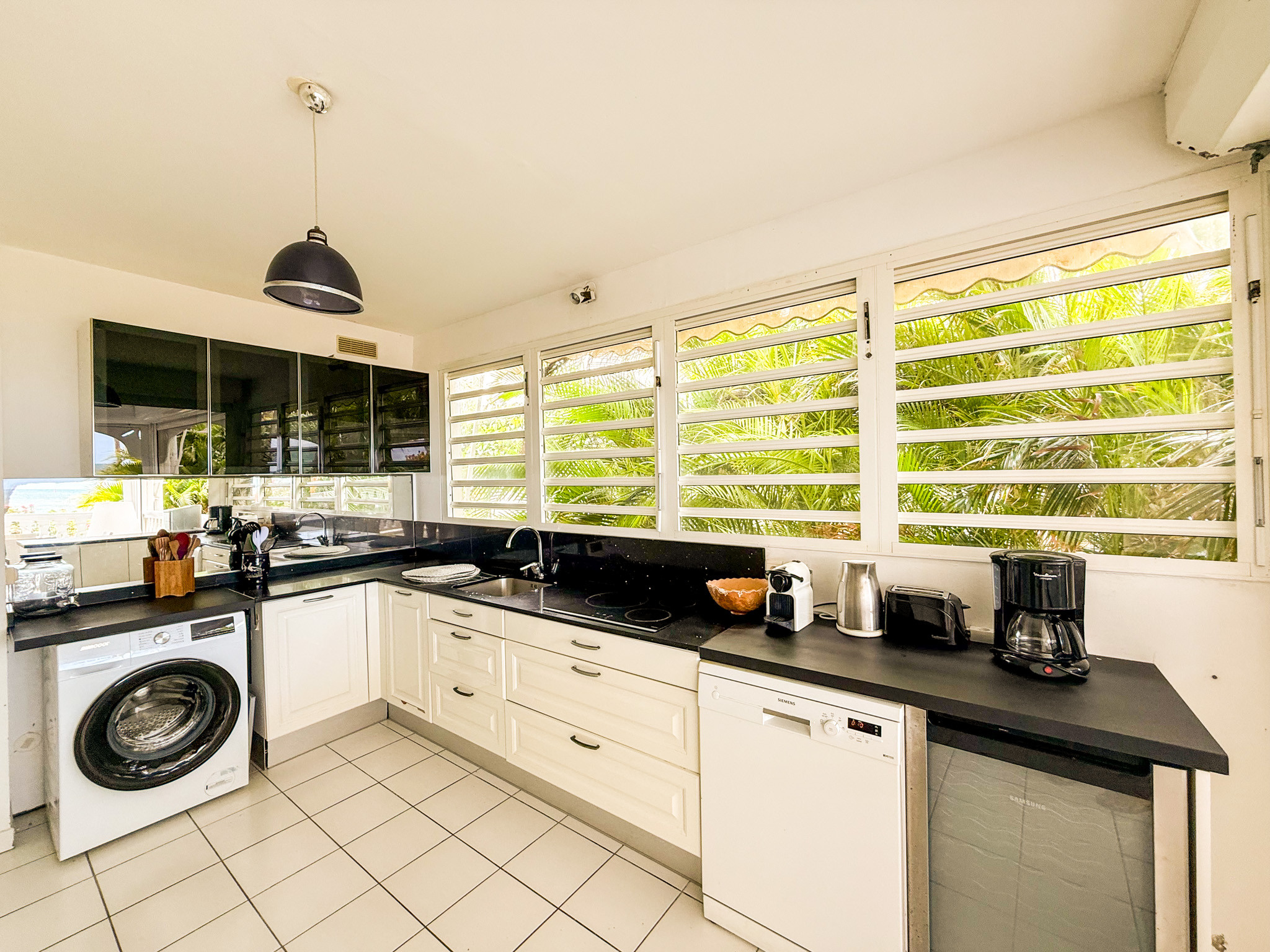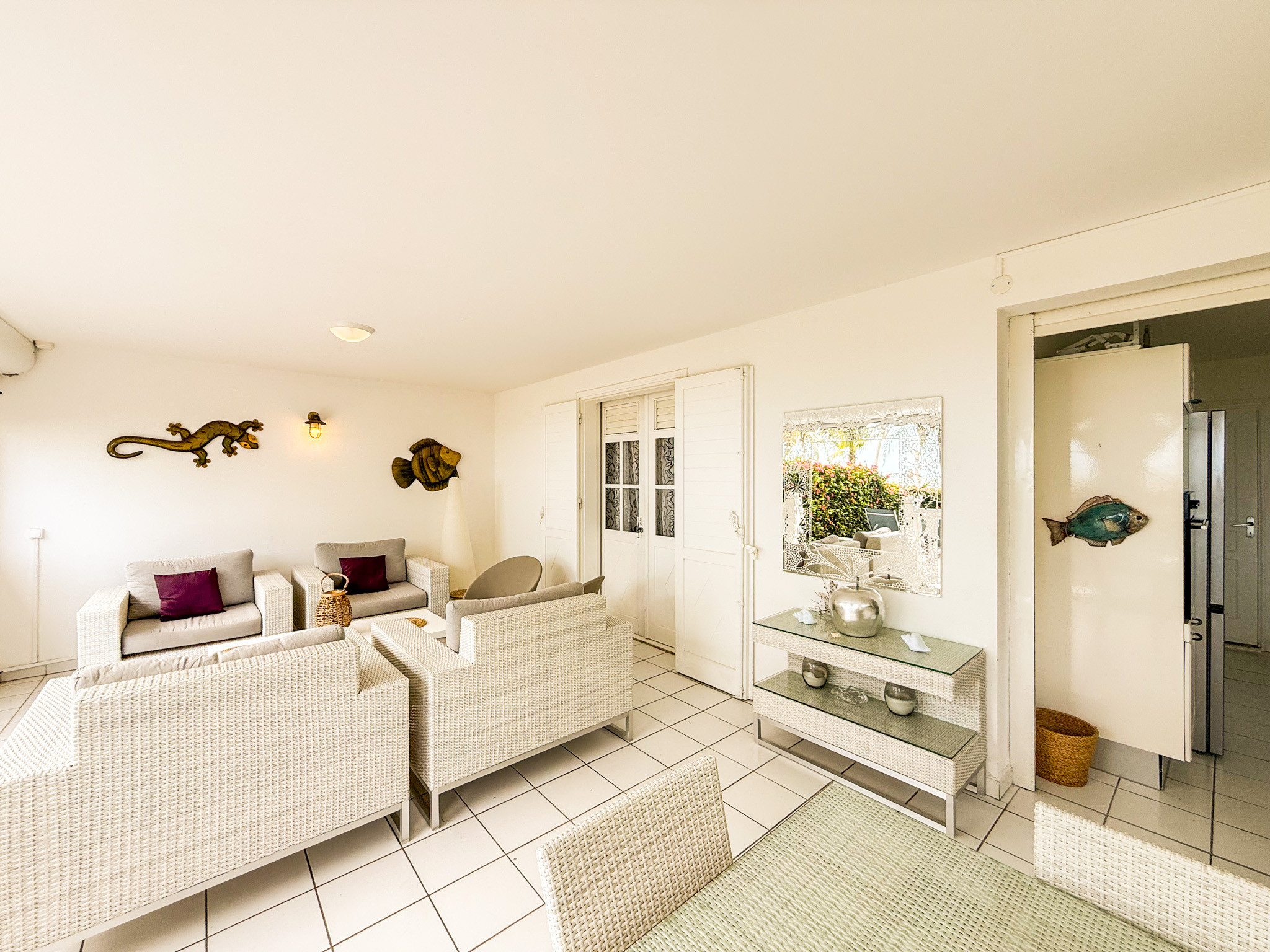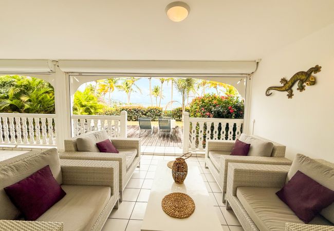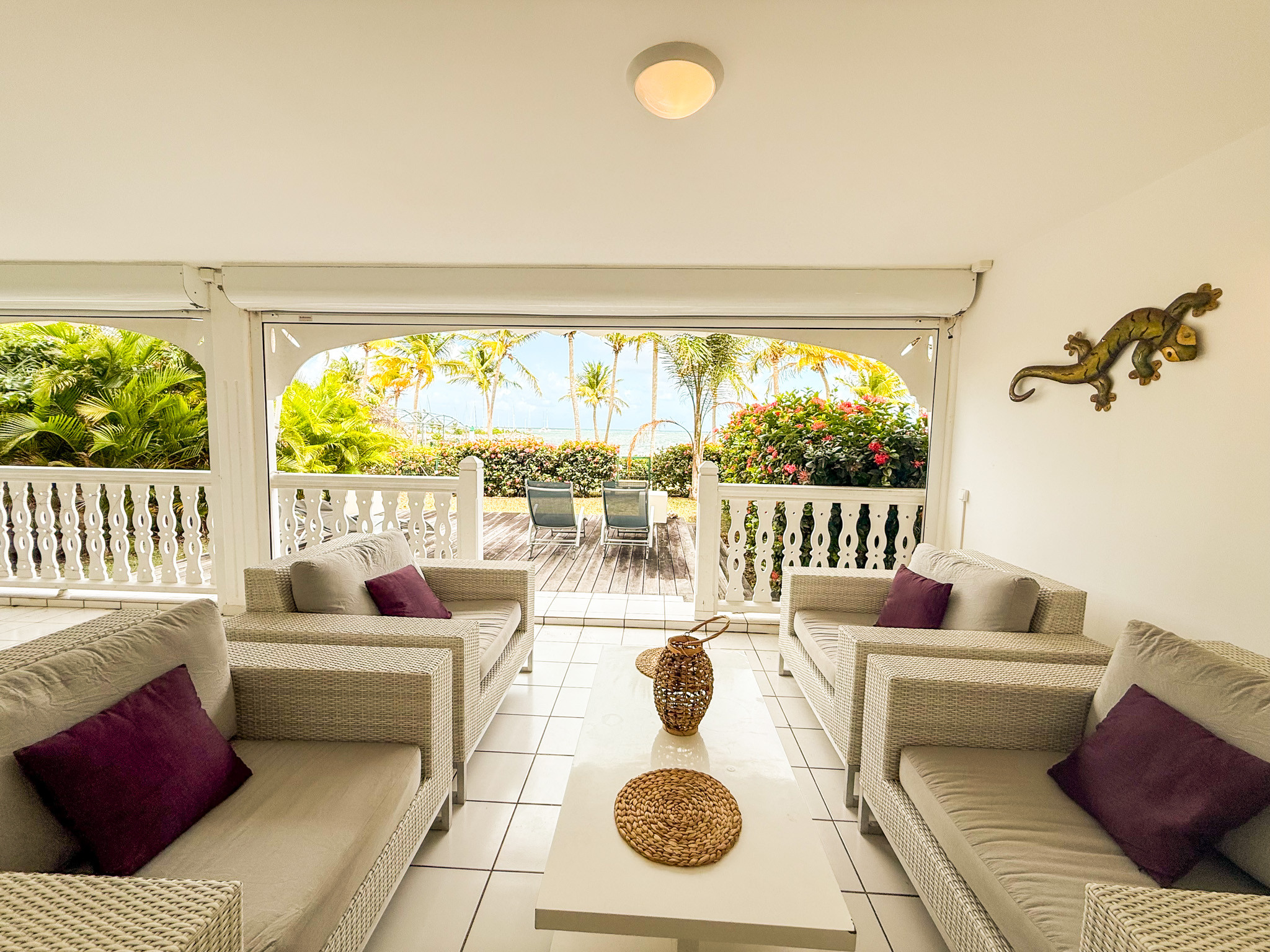 Superbe appartement 'Comme une maison' en rez de jardin, dans une luxueuse résidence close, avec accès direct à la plage de sable blanc au bout du jardin privatif. La vue sur le lagon turquoise est paradisiaque.
