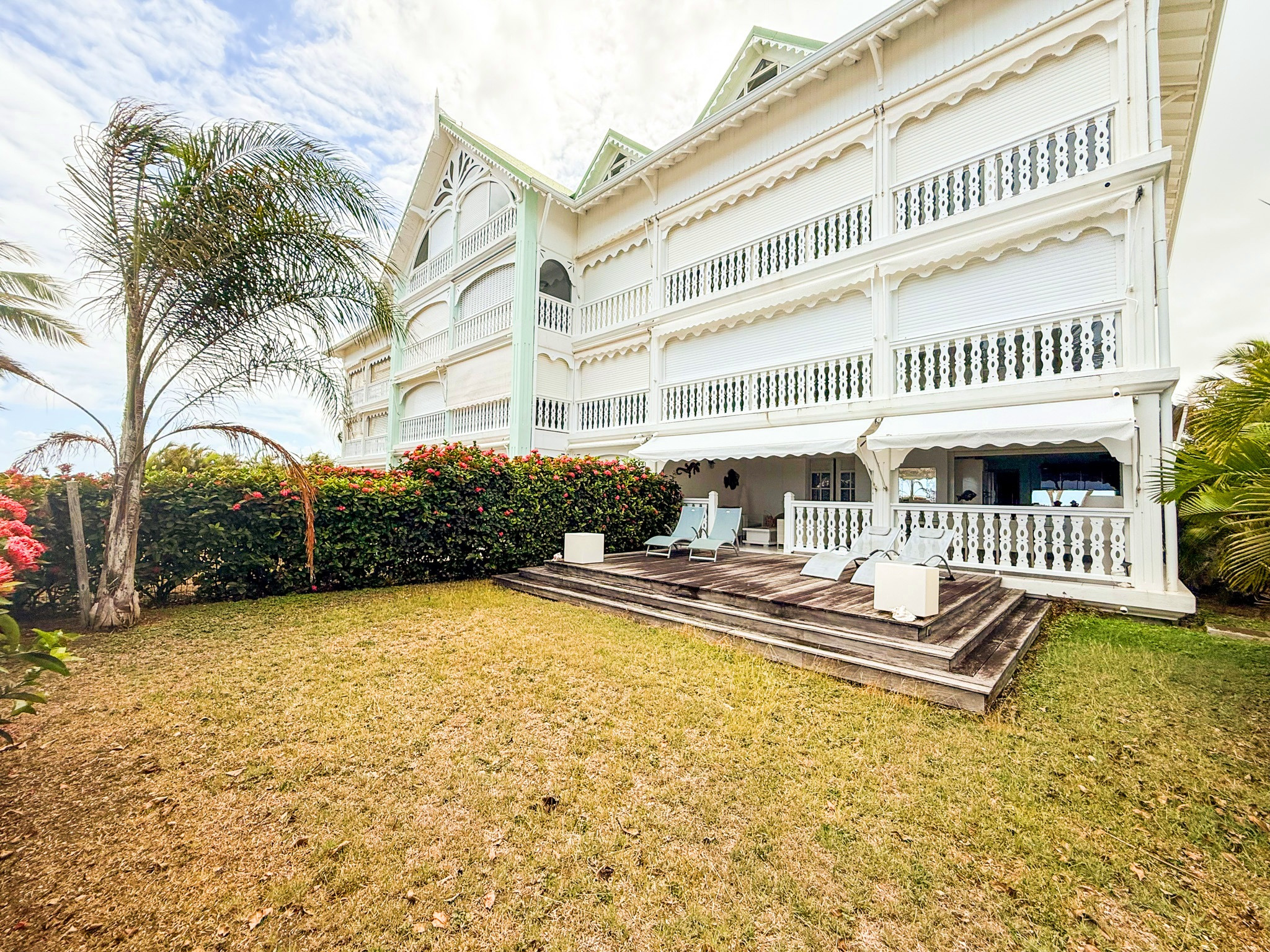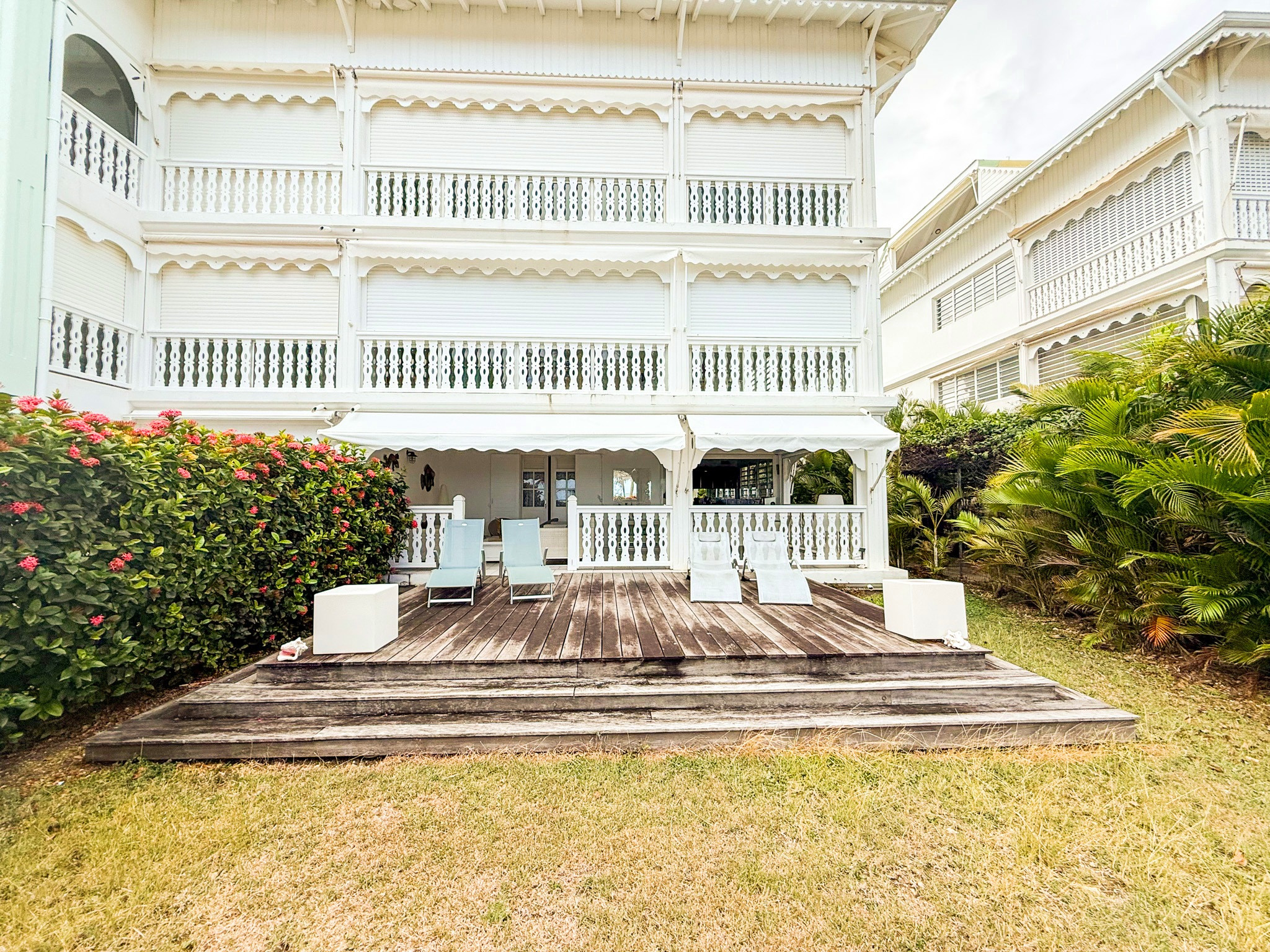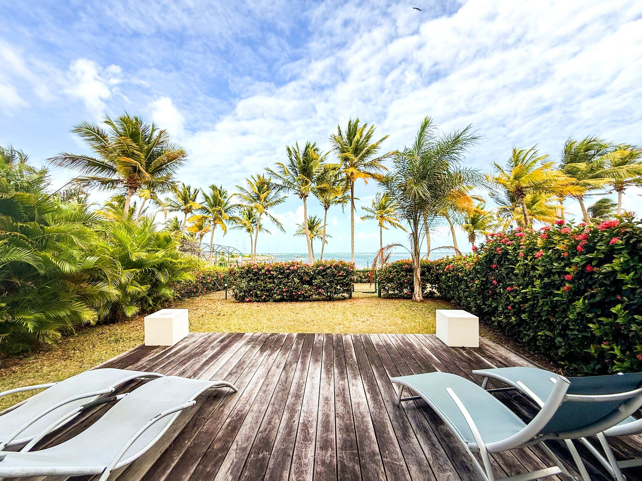 Double exposition sur le lagon et sur la marina, avec deux terrasses et deux jardins totalement privatifs.