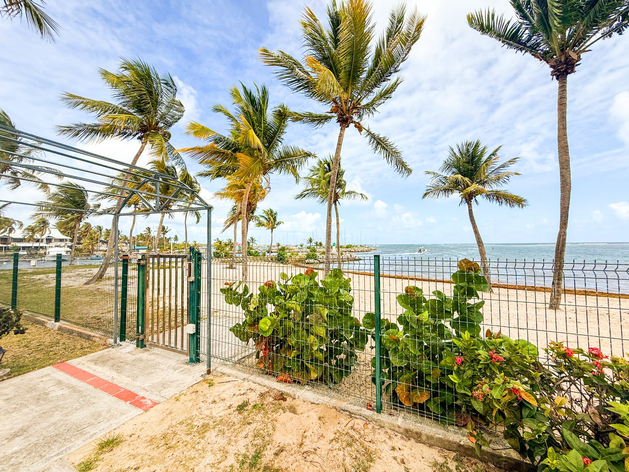 La résidence de grand standing est close, avec un emplacement de parking privé. L'accès à la marina, au golf, aux restaurants et aux commerces peut se faire à pied depuis la résidence. Le départ des bateaux pour les îles est également accessible.