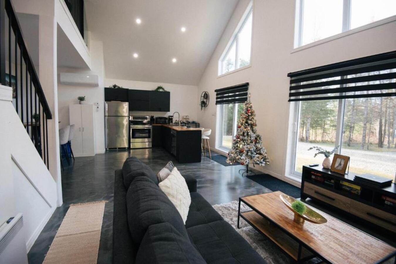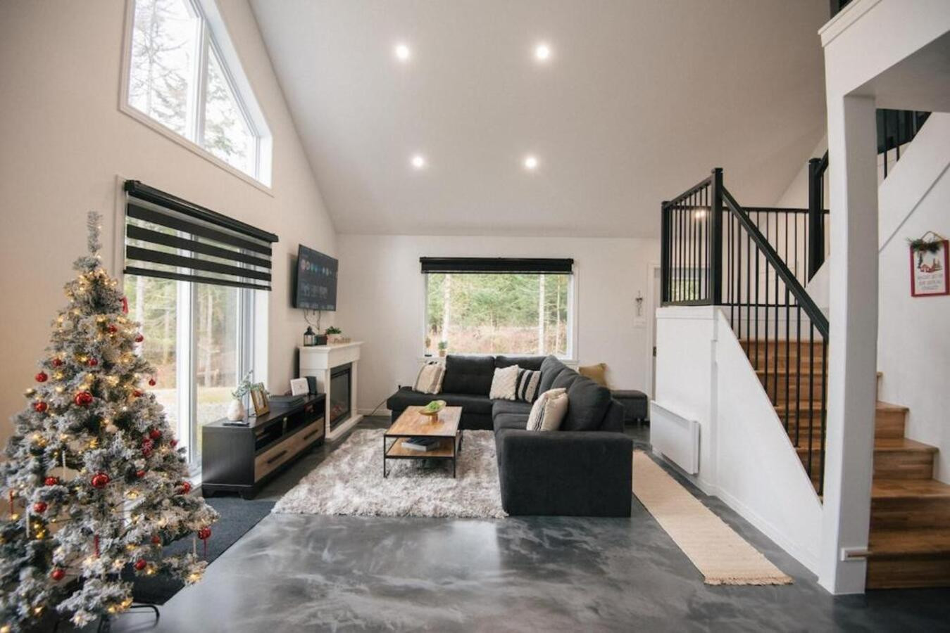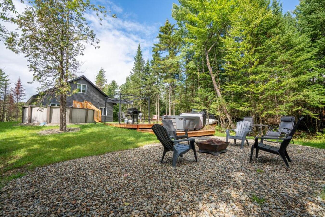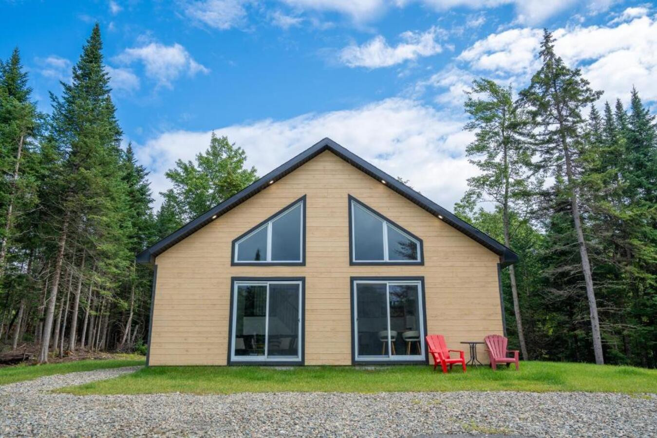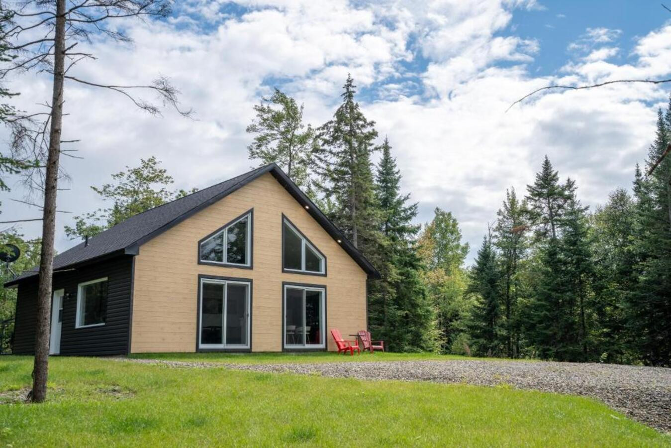 Découvrez le Chalet Escapade, un hébergement moderne et élégant situé à proximité de Montréal, parfaitement adapté aux familles, couples et groupes d'amis en quête de tranquillité.