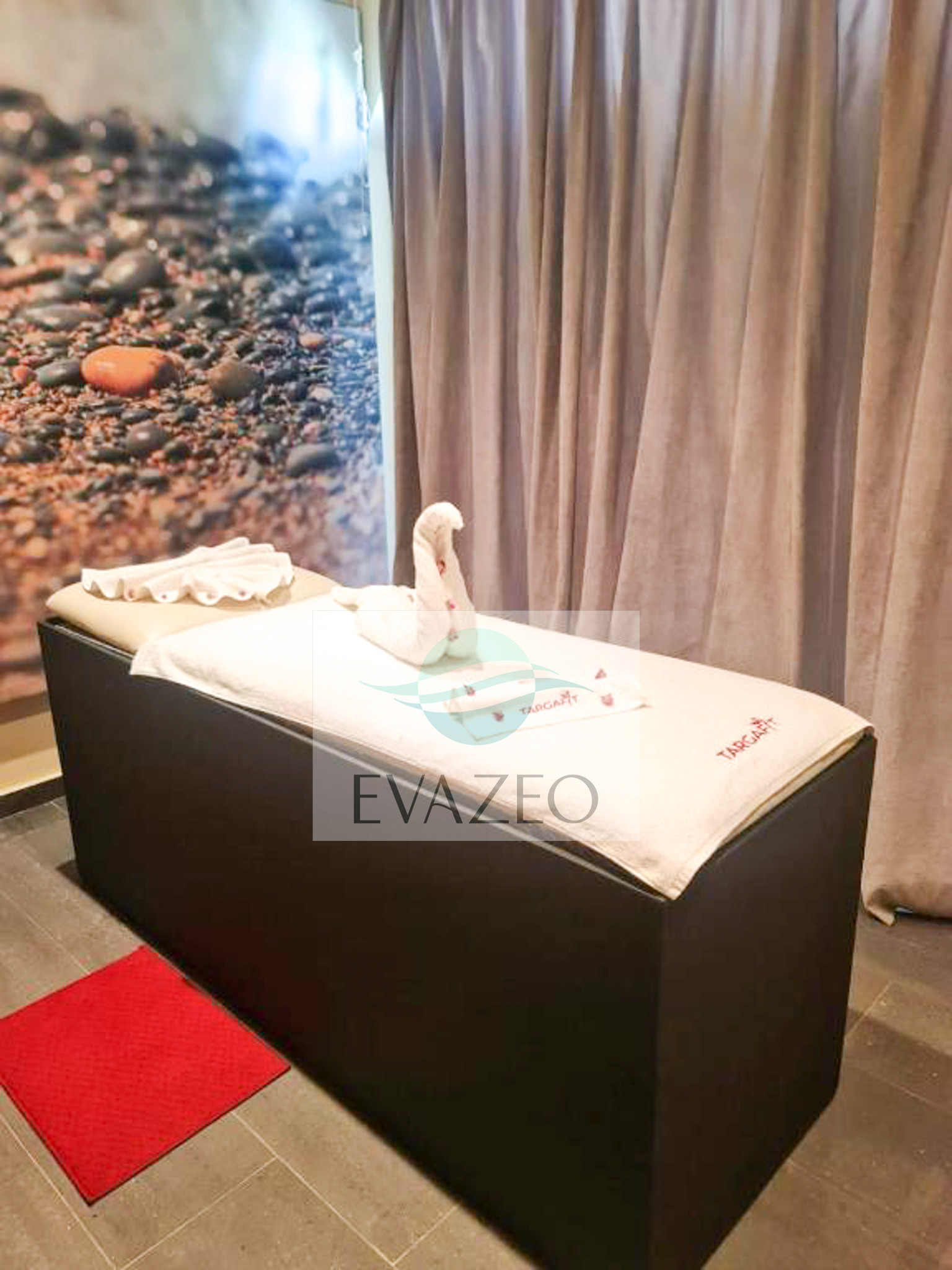 Votre séjour comprend l'accès aux installations bien-être : piscine extérieure bordée de palmiers, hammam traditionnel, espace spa avec soins du corps et salle de fitness entièrement équipée. Chaque matin, savourez un petit-déjeuner continental, végétarien ou halal selon vos préférences.