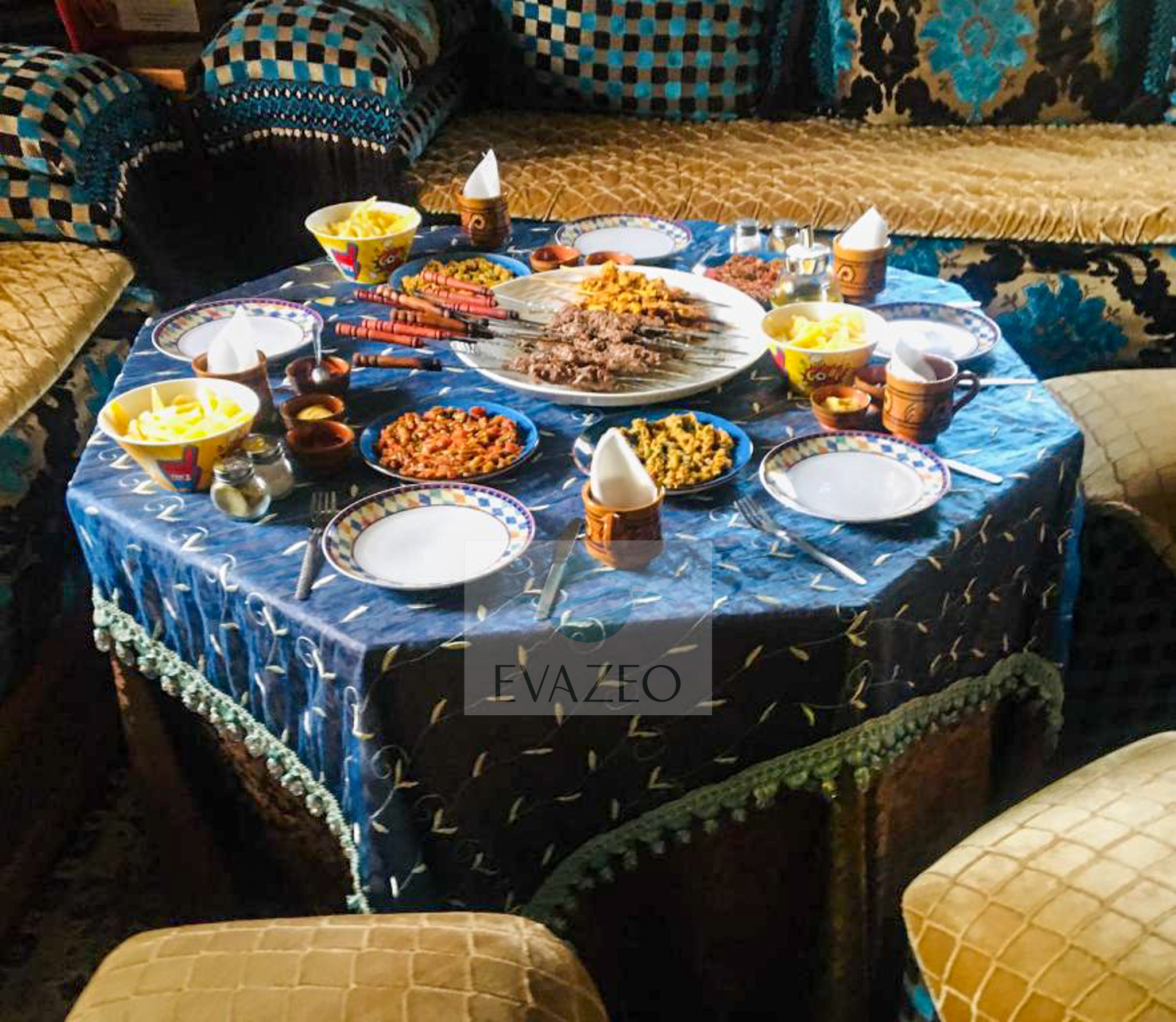 Espace de vie généreux avec décoration traditionnelle marocaine