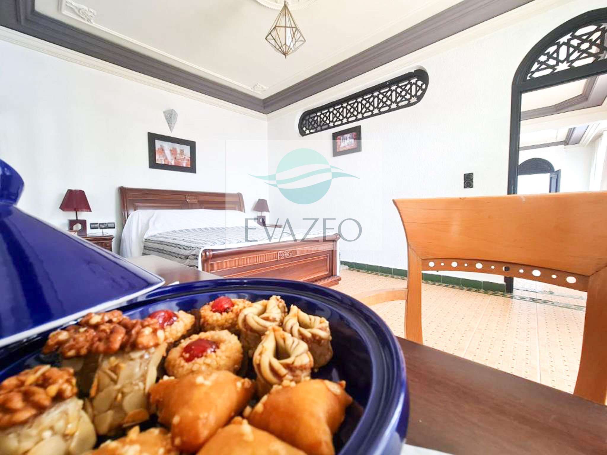 Cette suite de 40 m² vous accueille dans un décor traditionnel où se mêlent zellige, bois sculpté et touches artisanales. Profitez d'un grand lit double ultra-confortable, d'un coin salon avec canapé pour vos moments de détente, et d'un balcon privatif offrant une vue apaisante sur le jardin ou la piscine. Certaines suites disposent d'une piscine privée pour une intimité absolue.