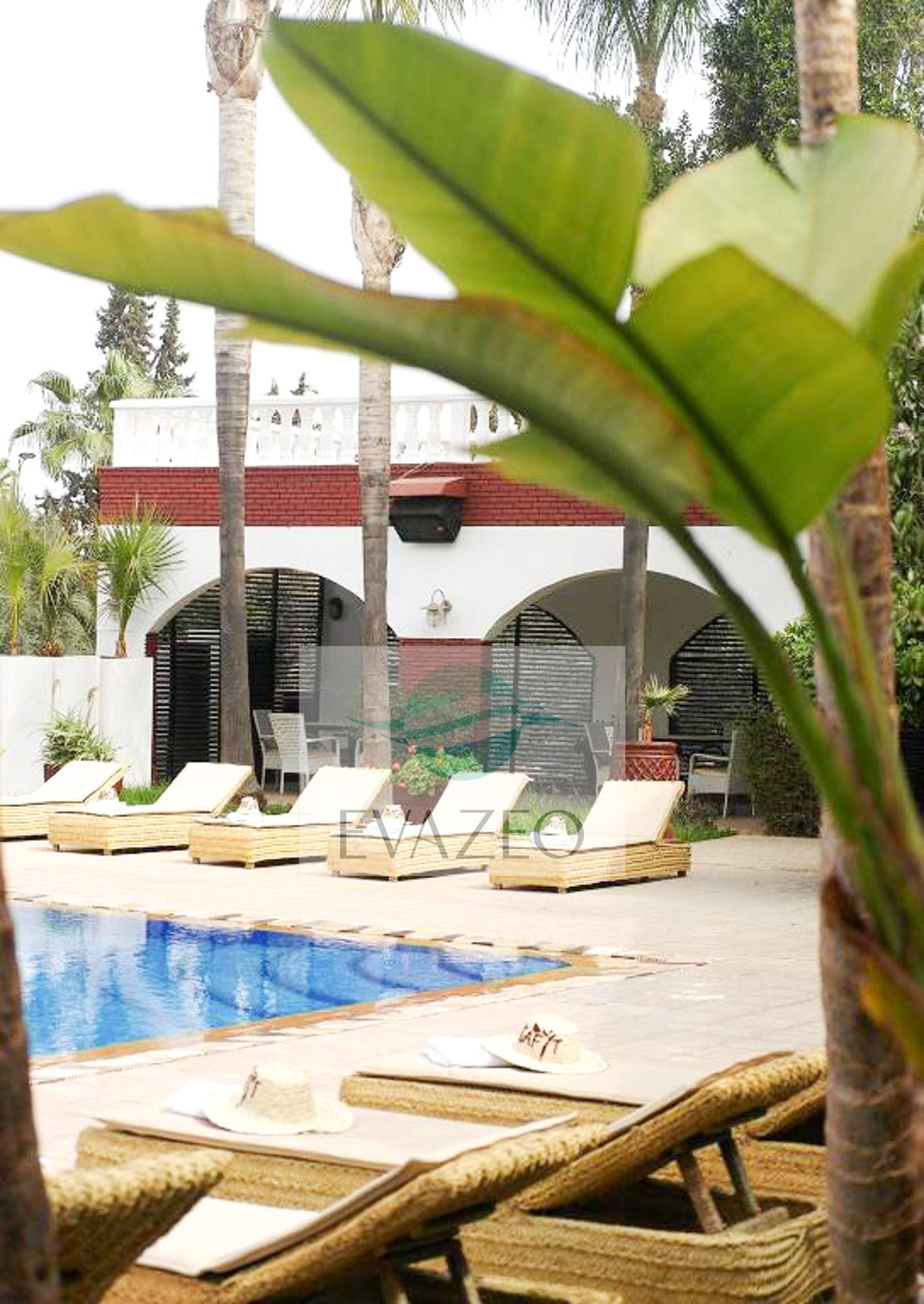 Profitez de la piscine extérieure bordée d'un jardin luxuriant, des terrasses ombragées et du calme absolu de la campagne marocaine. Climatisation, WiFi, restaurant sur place et cours de yoga complètent les prestations. Une parenthèse de sérénité aux portes de la ville ocre, parfait pour couples, familles ou groupes d'amis.