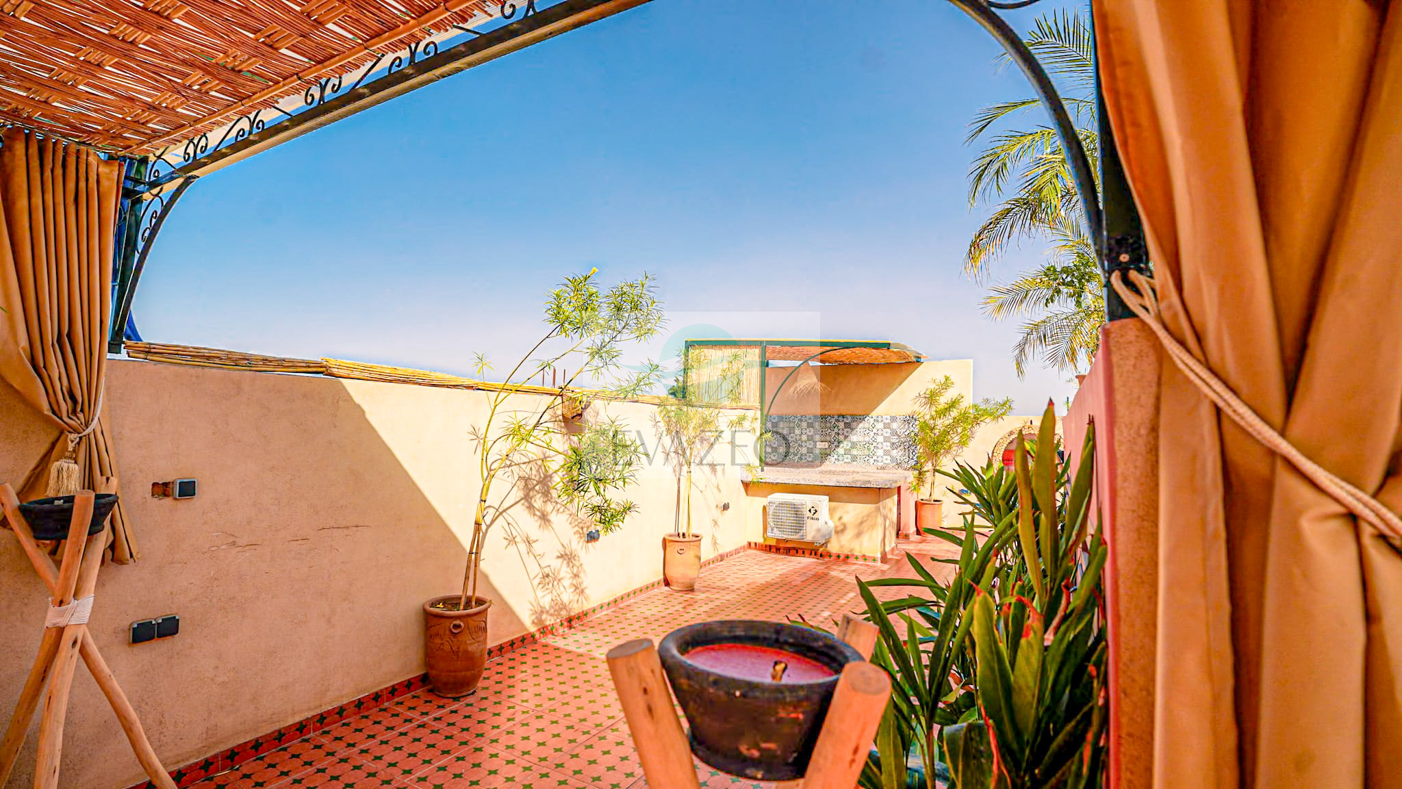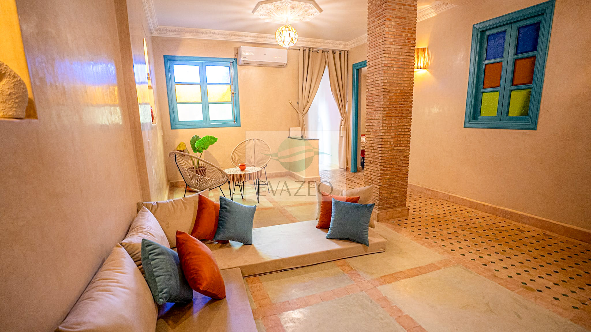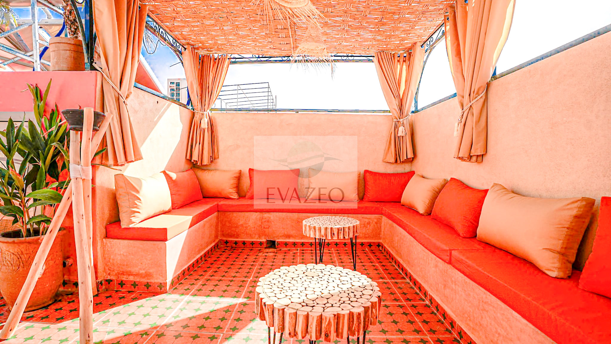 Niché au cœur de la Médina, le Riad Orazur vous accueille à quelques pas de l'emblématique place Jemaa el-Fna. Ce riad de charme conjugue tradition marocaine et confort moderne : chambres climatisées avec salle de bain privative, terrasse panoramique pour vos soirées sous les étoiles, et sauna pour une parenthèse bien-être après une journée dans les souks.