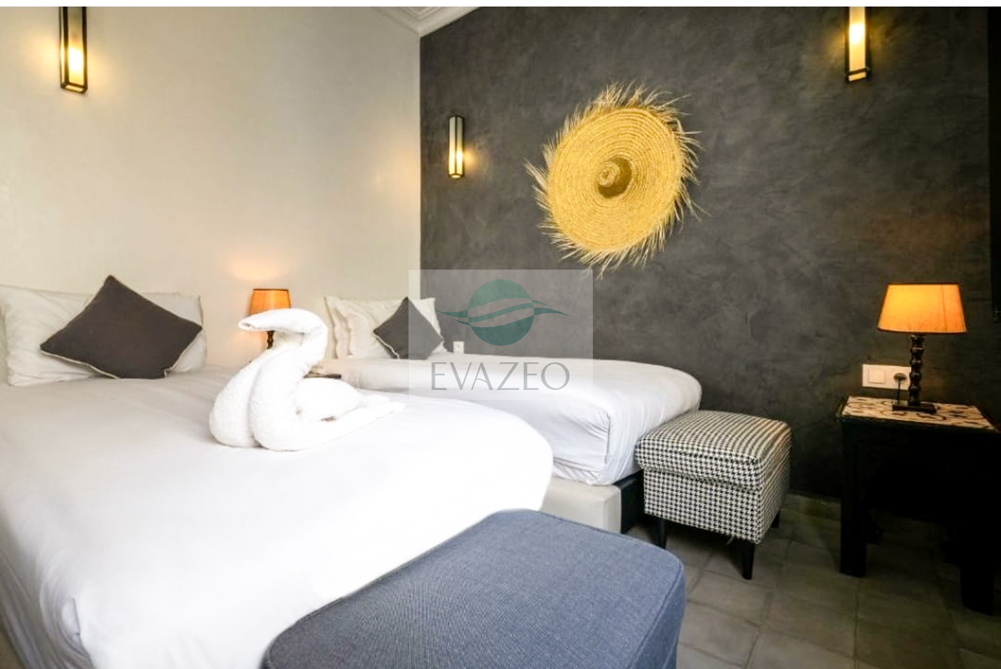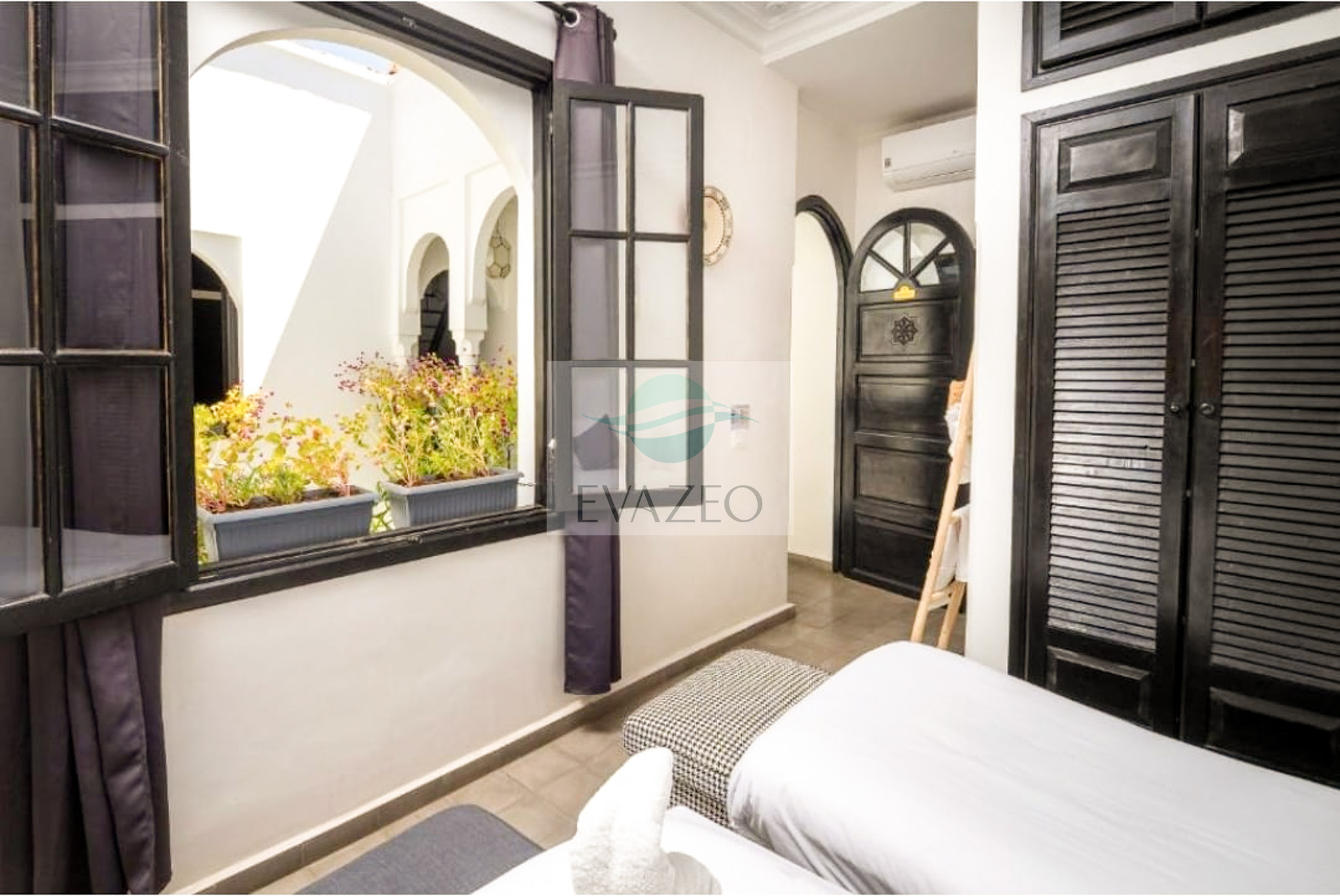 Idéale pour un voyage entre amis ou en famille, cette chambre triple du Riad Orazur offre tout le confort d'un séjour authentique au cœur de la Médina de Marrakech. Spacieuse et climatisée, elle dispose d'une salle de bain privative avec sèche-cheveux et linge de maison fourni.