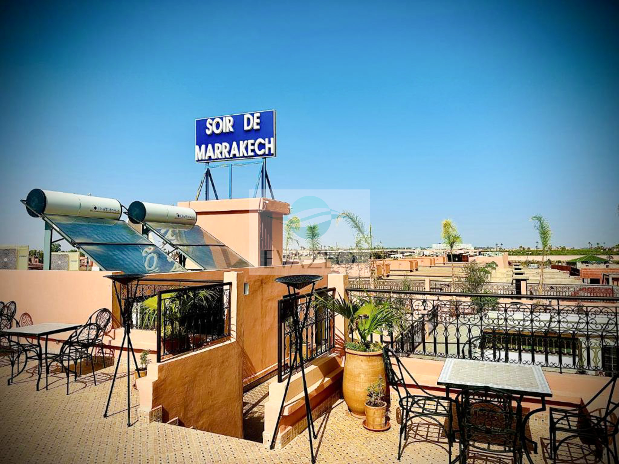 Le Riad Soir De Marrakech possède une réception ouverte 24h/24, une terrasse et un bar. Un salon commun est également à votre disposition.