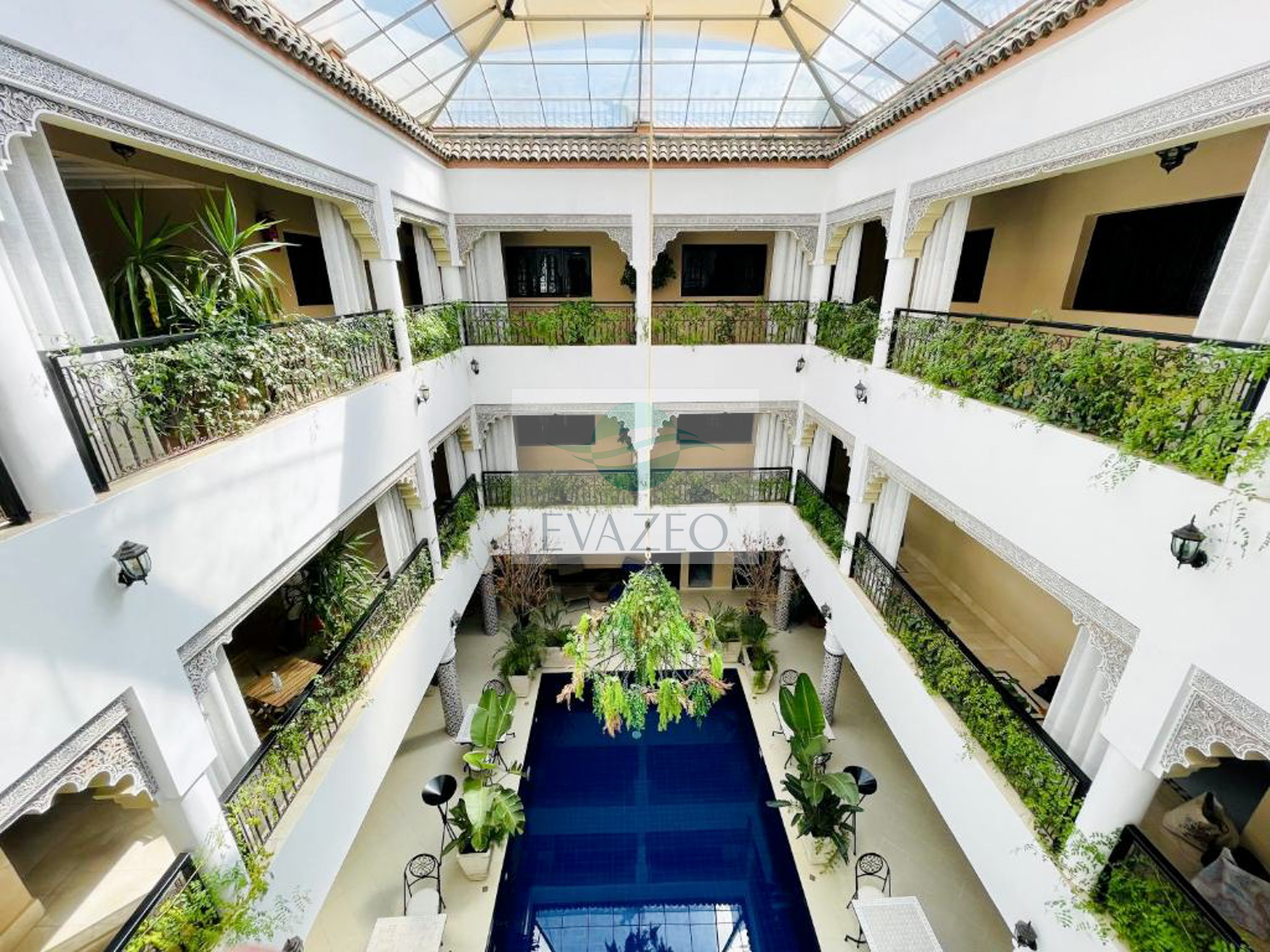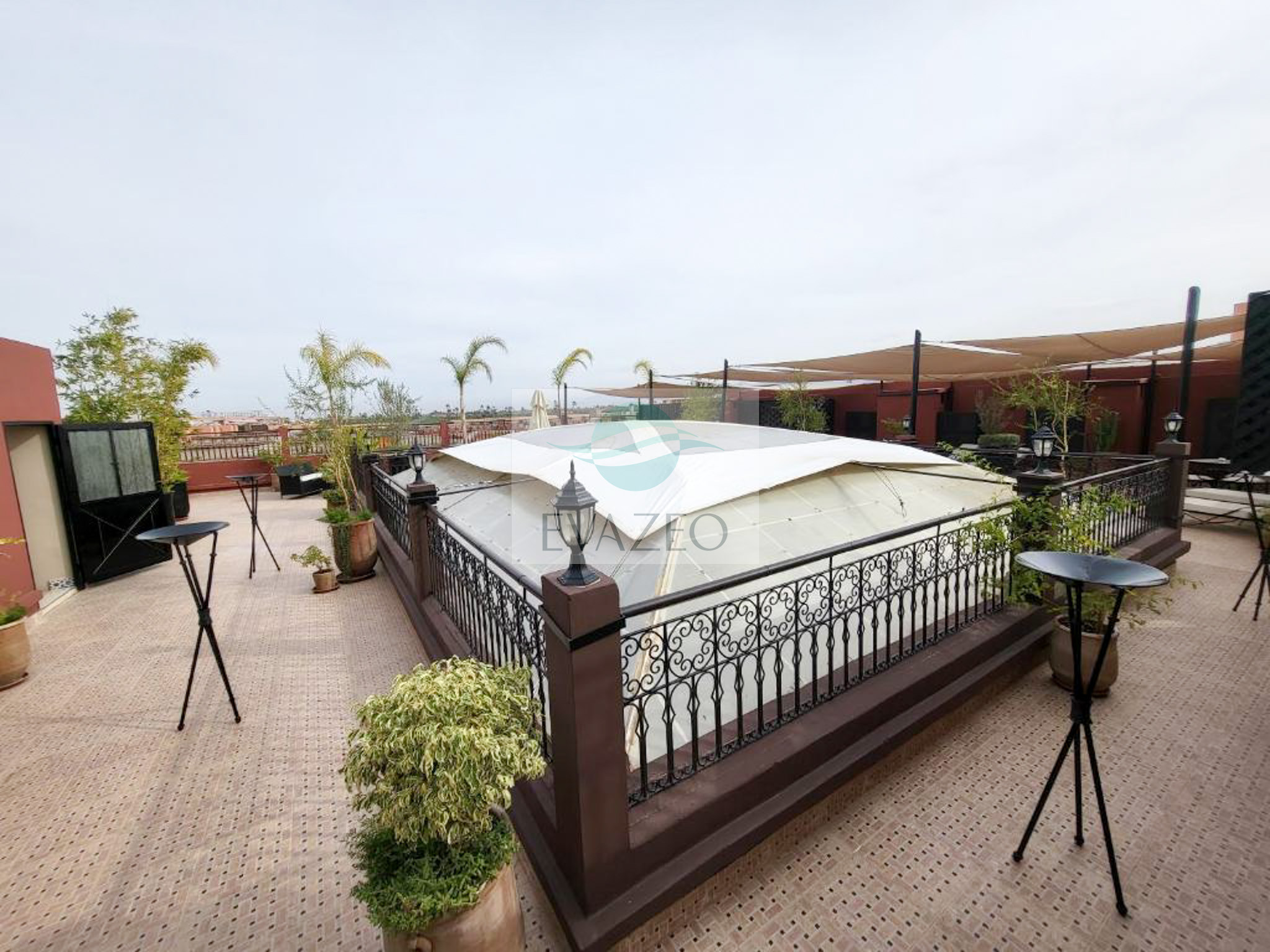 Niché au cœur de la Médina, le Riad Orazur vous accueille à quelques pas de l'emblématique place Jemaa el-Fna. Ce riad de charme conjugue tradition marocaine et confort moderne : chambres climatisées avec salle de bain privative, terrasse panoramique pour vos soirées sous les étoiles, et sauna pour une parenthèse bien-être après une journée dans les souks.