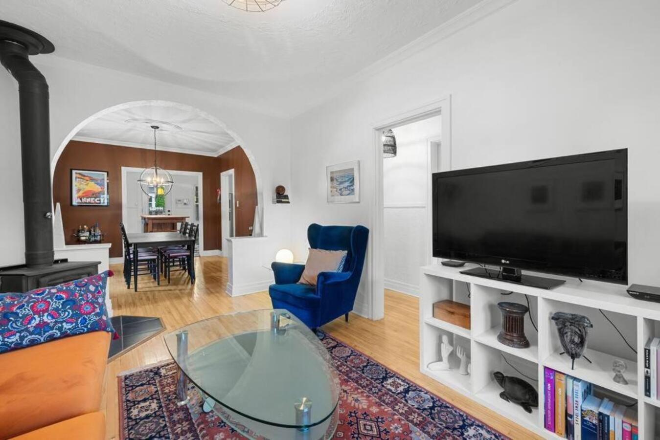 L'intérieur dispose de 3 chambres confortables pouvant accueillir jusqu'à 8 personnes, avec un agencement flexible comprenant un lit king-size, deux lits queen-size et un canapé-lit. Deux salles de bains - l'une avec douche et l'autre avec baignoire - garantissent le confort de tous les voyageurs.