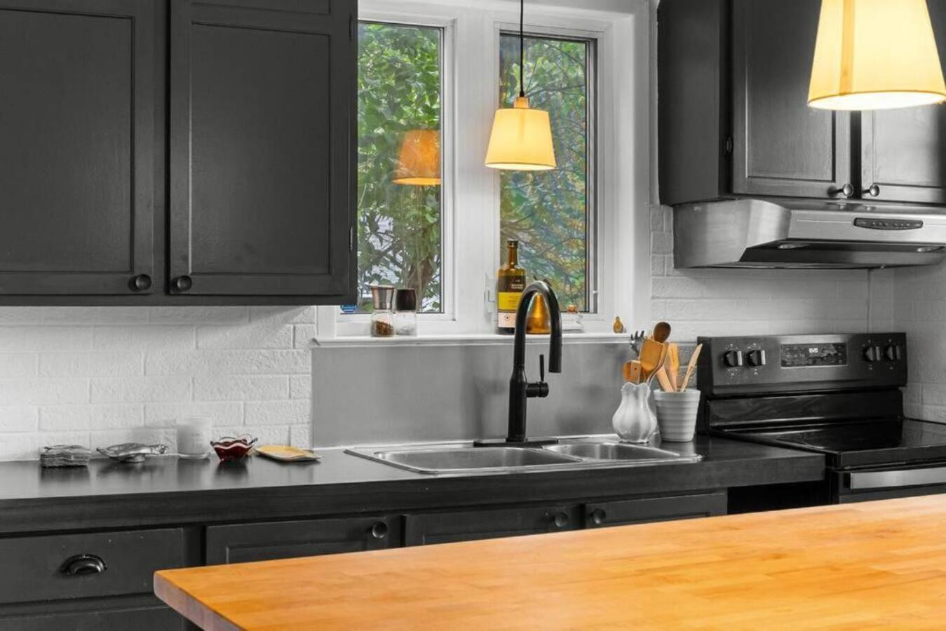 La cuisine américaine est entièrement équipée avec de nombreux équipements : réfrigérateur, machine à laver, lave-vaisselle, four, micro-ondes, machine à café, et bien plus encore. Une télévision est également disponible pour vos moments de détente.