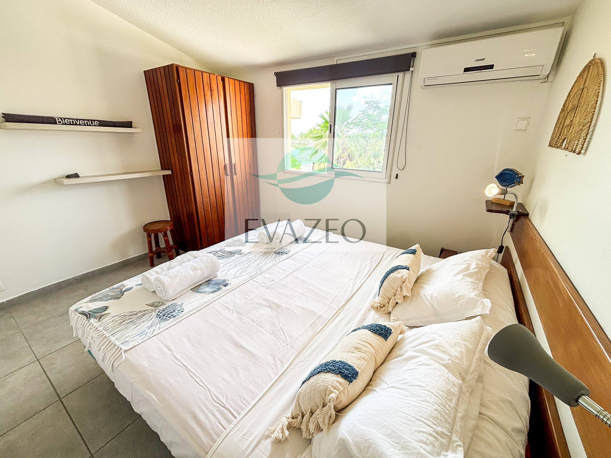 La terrasse est l'un des points forts de ce logement, offrant un espace extérieur parfait pour profiter des soirées tropicales et admirer la vue sur la mer. Vous apprécieriez la proximité immédiate de la plage de sable, à seulement 100 mètres, ainsi que l'accès facile aux restaurants situés à 500 mètres.