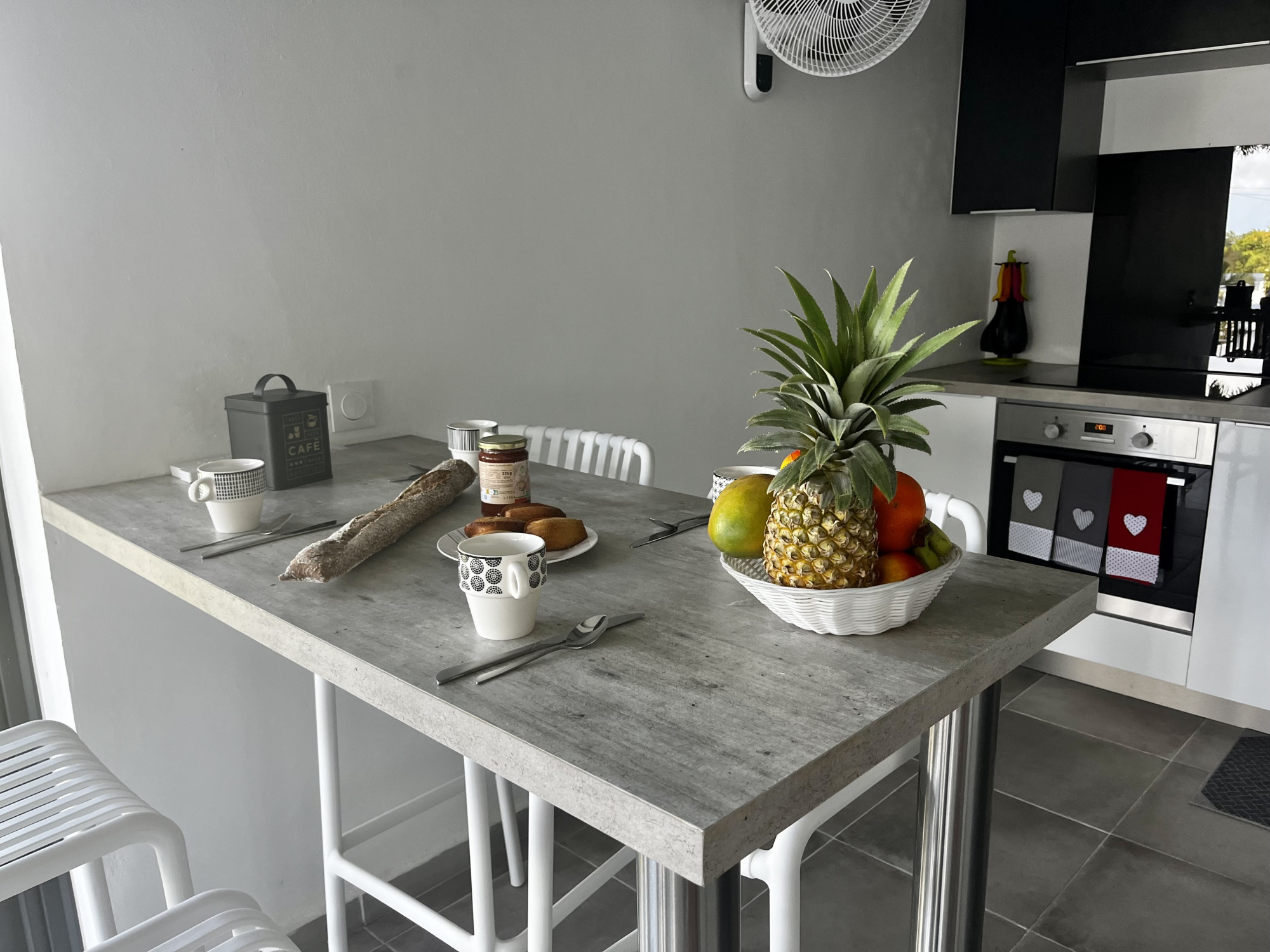 ✔ Salon ouvert : Un espace baigné de lumière où règne une atmosphère conviviale, parfait pour se relaxer ou partager un apéritif.