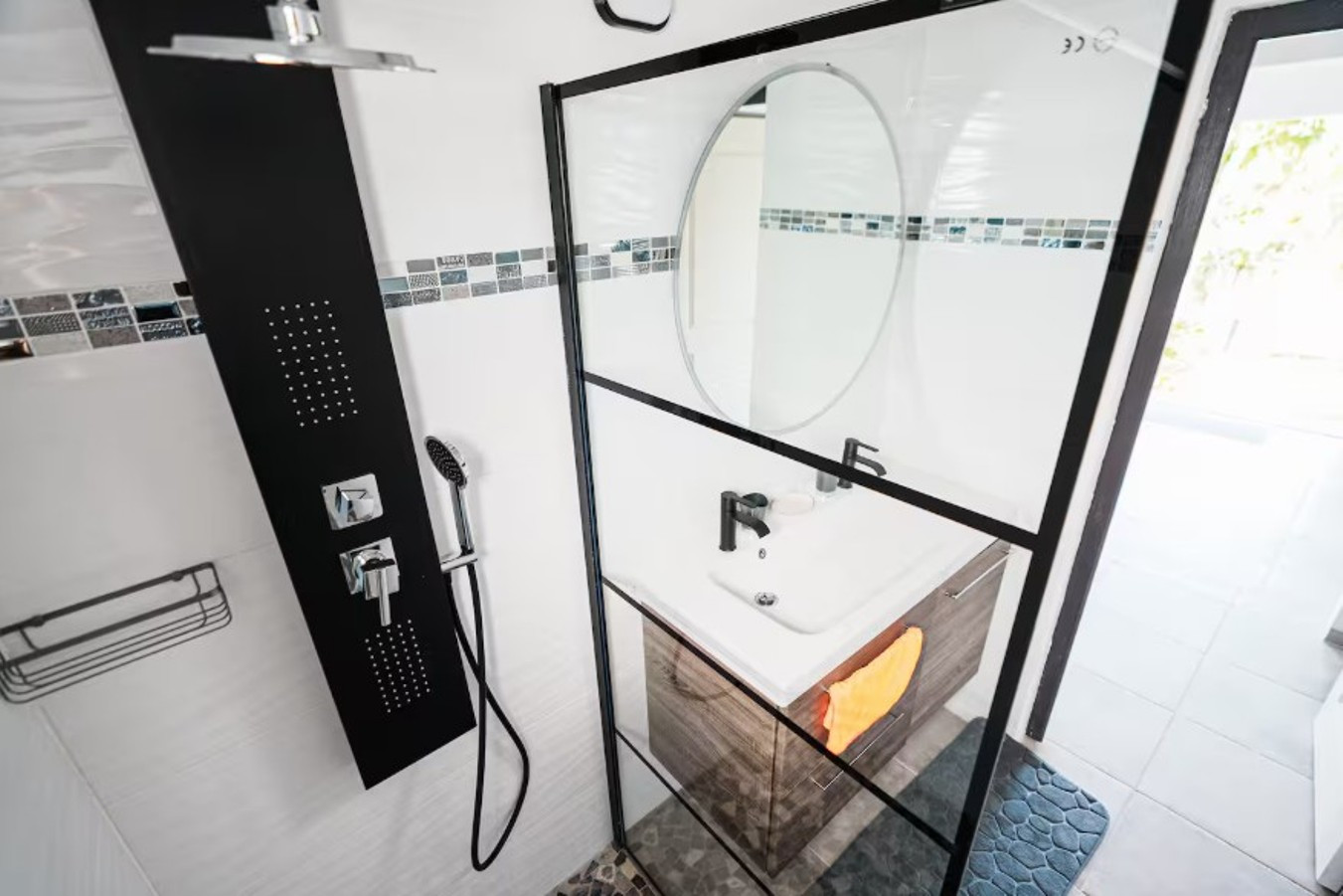 ✔ Salle de bain élégante – Détendez-vous sous une douche à l’italienne, pensée pour un confort optimal.
