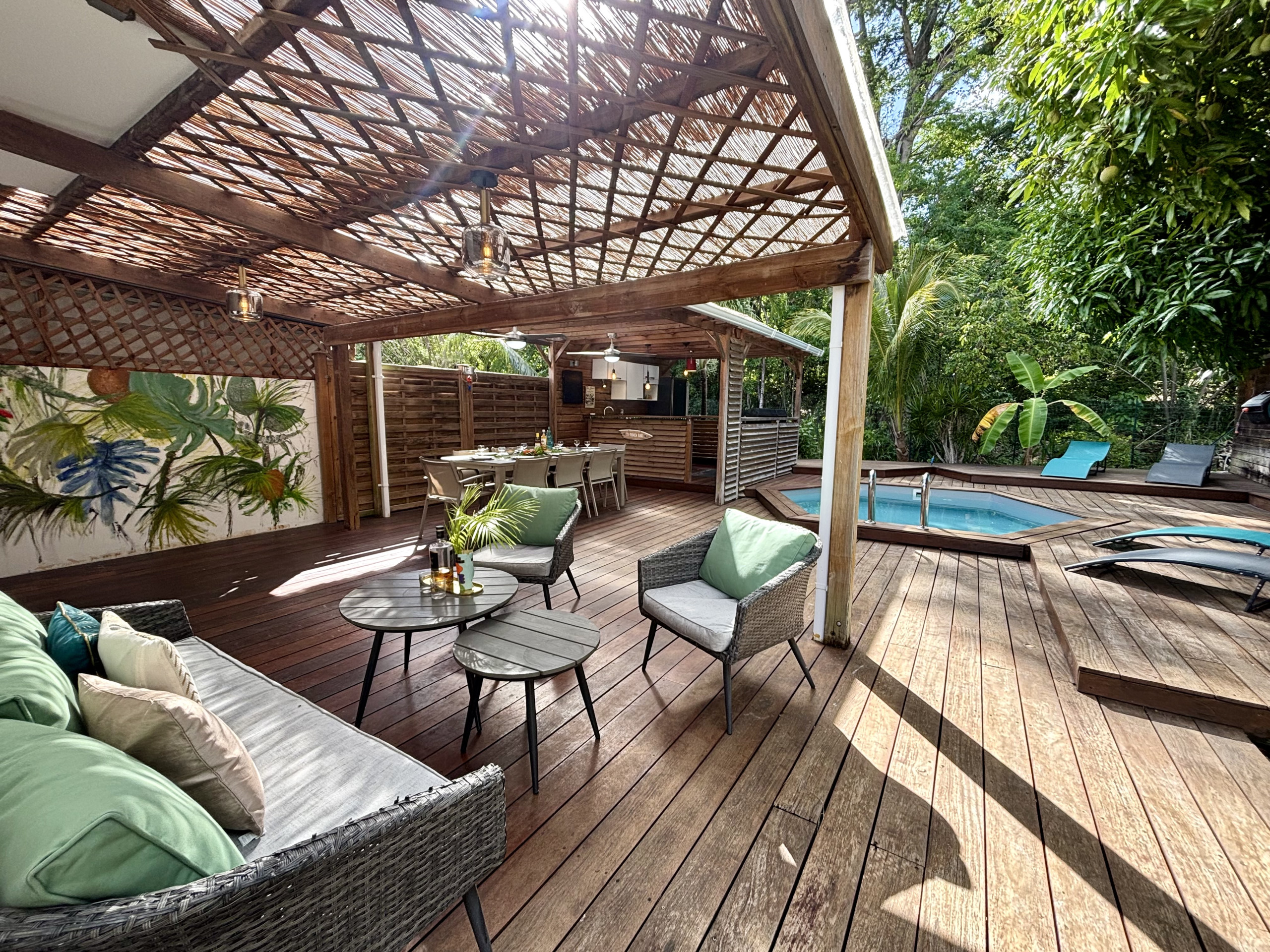 Découvrez la villa Sybelle, un hébergement parfait pour des vacances entre amis au Diamant, en Martinique. Cette villa spacieuse de 100m² offre un cadre idéal pour un séjour convivial et relaxant, avec une capacité d'accueil jusqu'à 8 personnes.