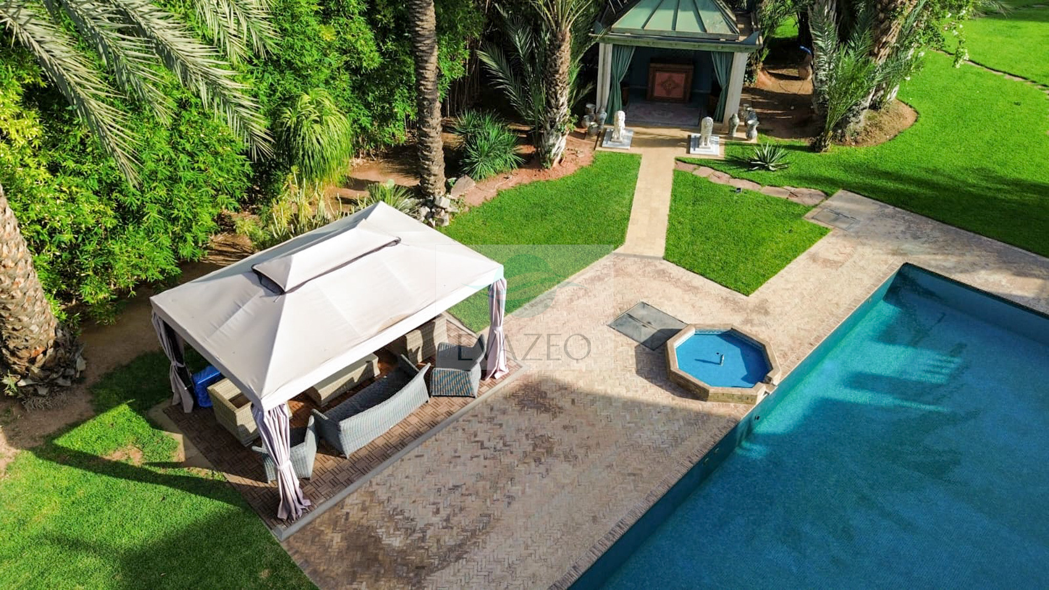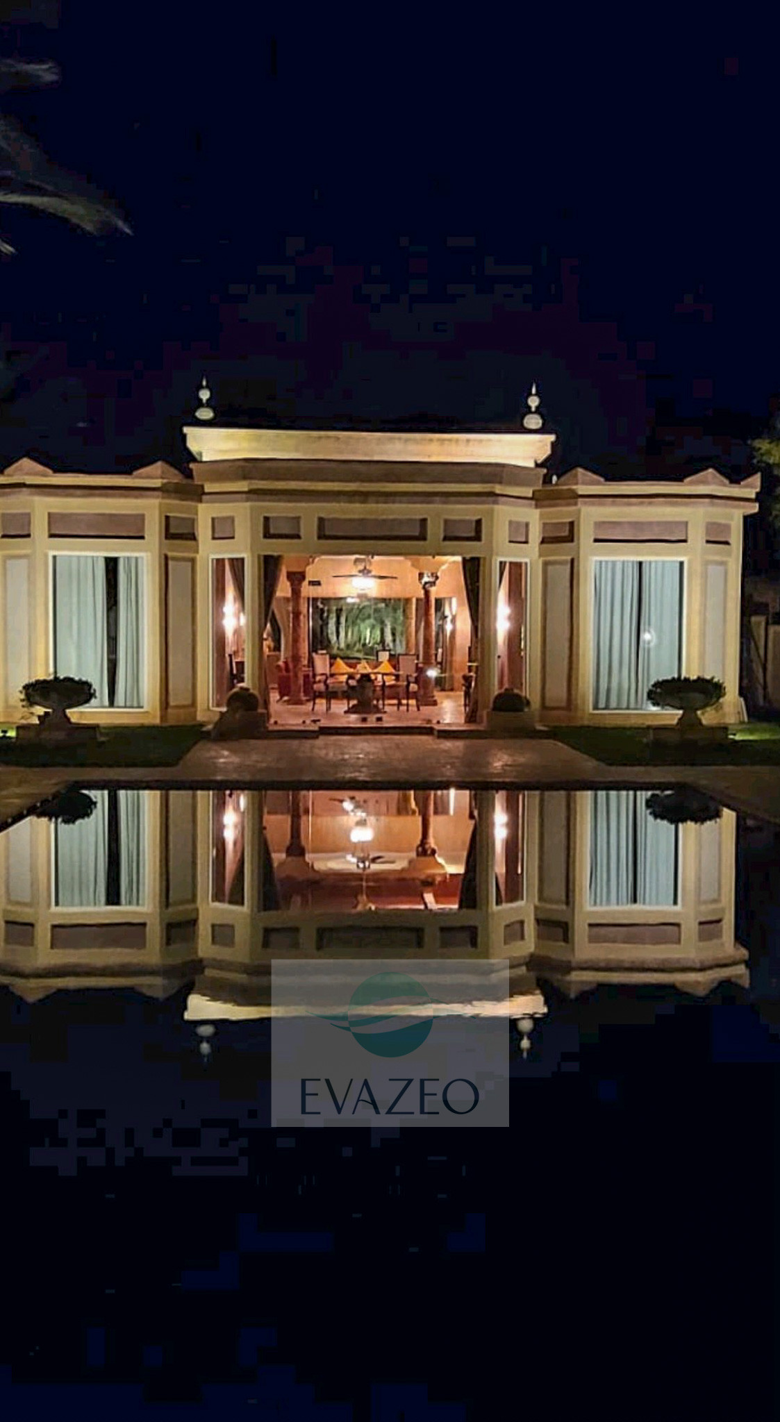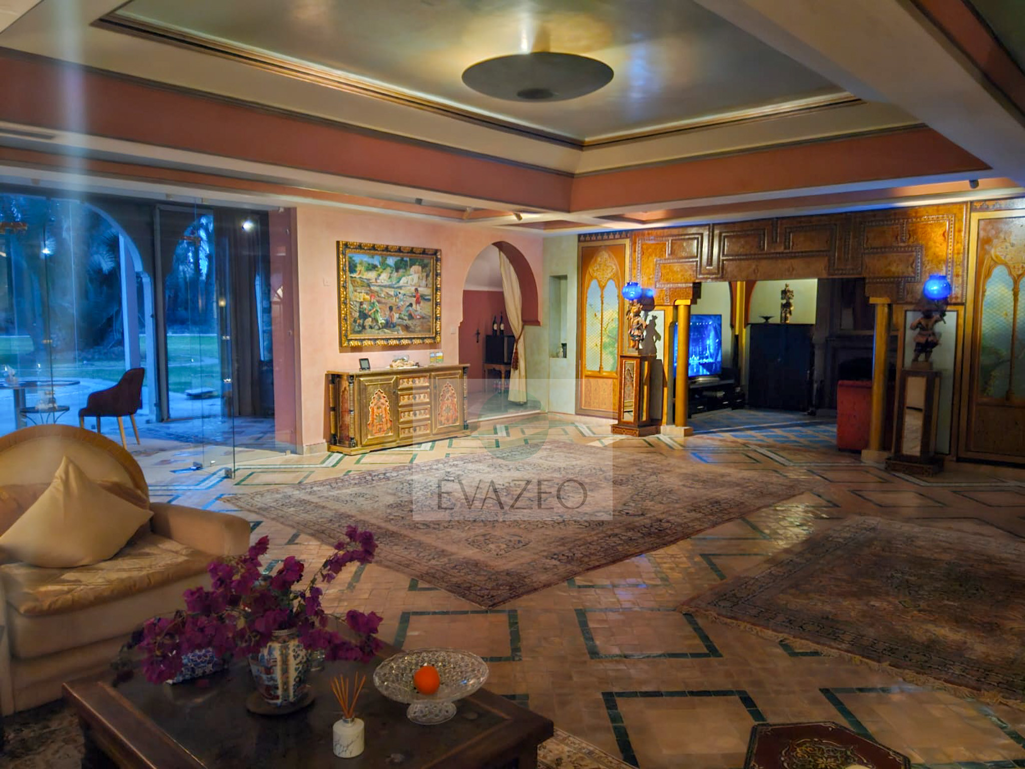 À seulement 3 kilomètres de Bab Khamiss, la Villa Oussoud vous ouvre les portes d'un domaine d'exception de 5 400 m² au cœur de la mythique Palmeraie de Marrakech. Cette demeure de 1 200 m² se loue en exclusivité totale pour des séjours inoubliables entre amis ou en famille.