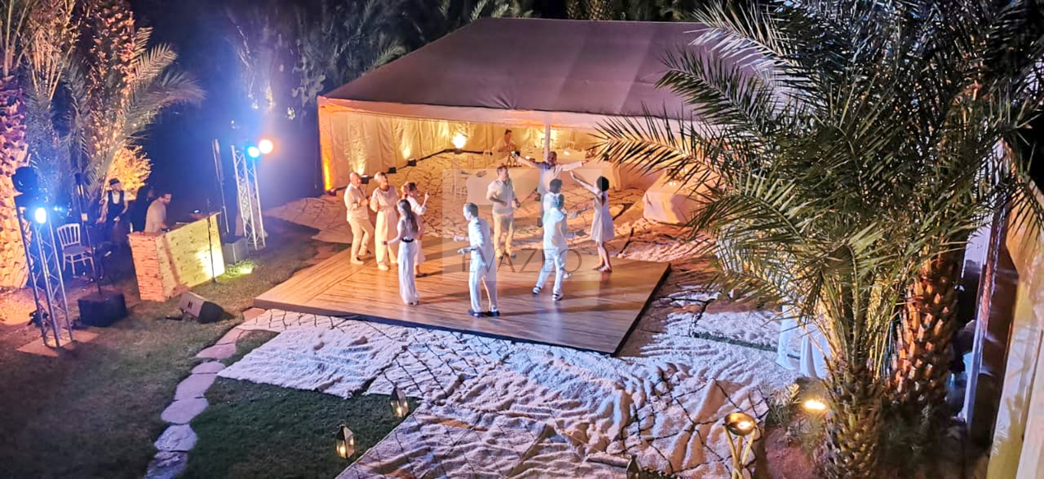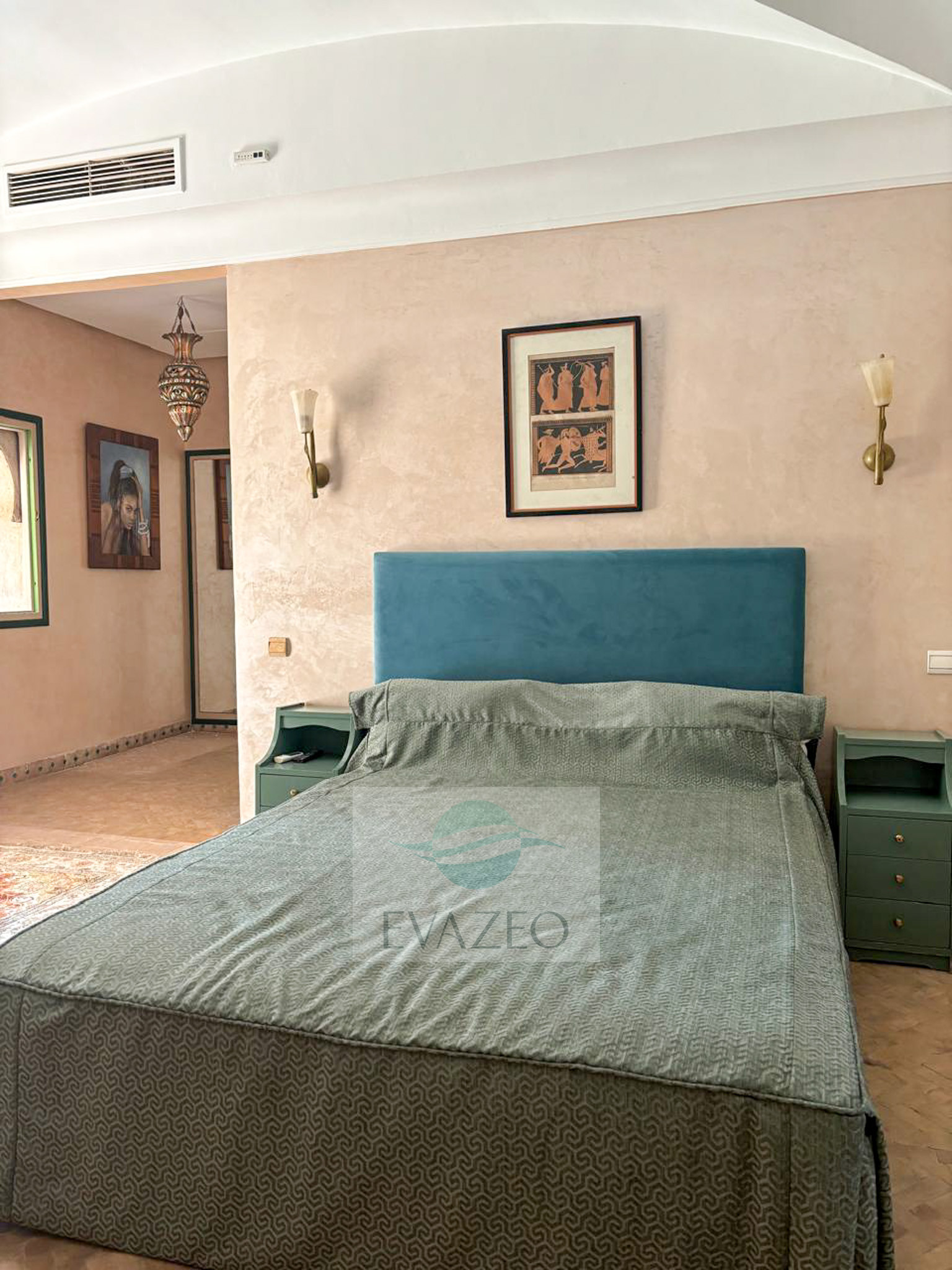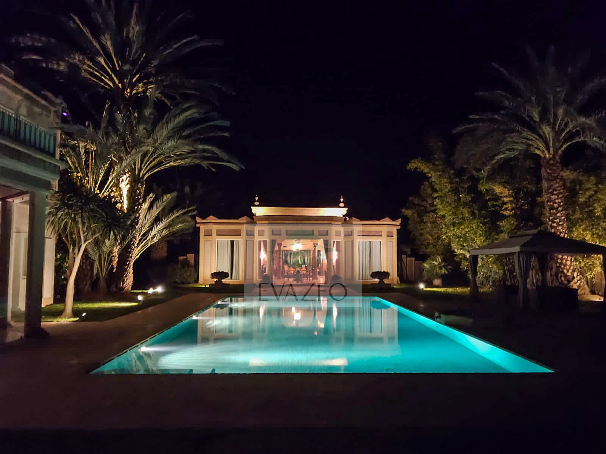 À seulement 3 kilomètres de Bab Khamiss, la Villa Oussoud vous ouvre les portes d'un domaine d'exception de 5 400 m² au cœur de la mythique Palmeraie de Marrakech. Cette demeure de 1 200 m² se loue en exclusivité totale pour des séjours inoubliables entre amis ou en famille.