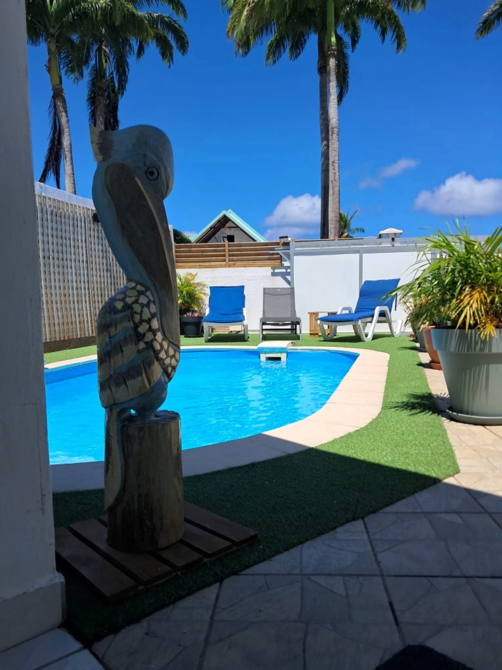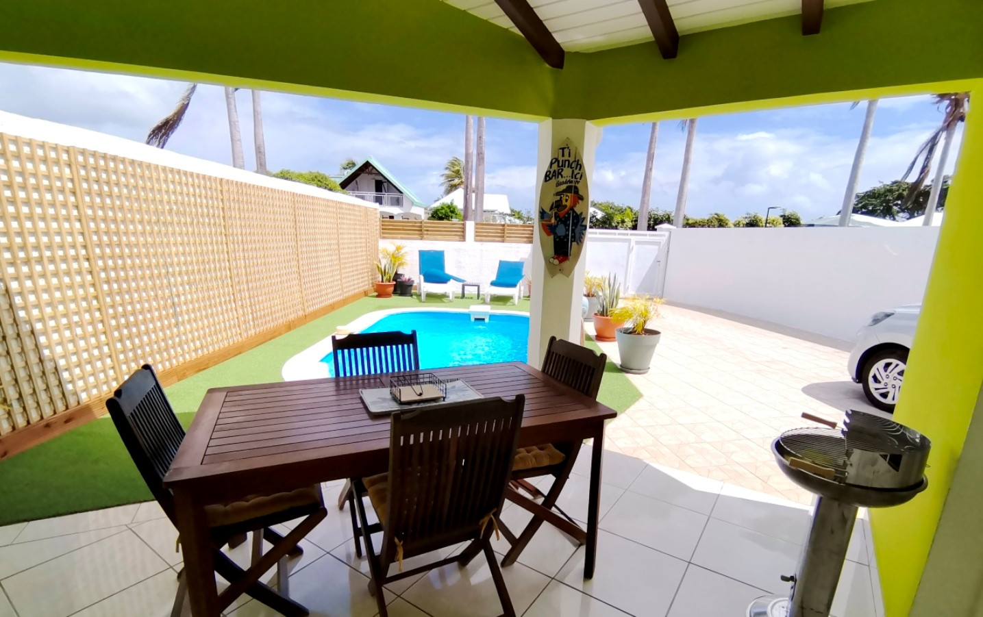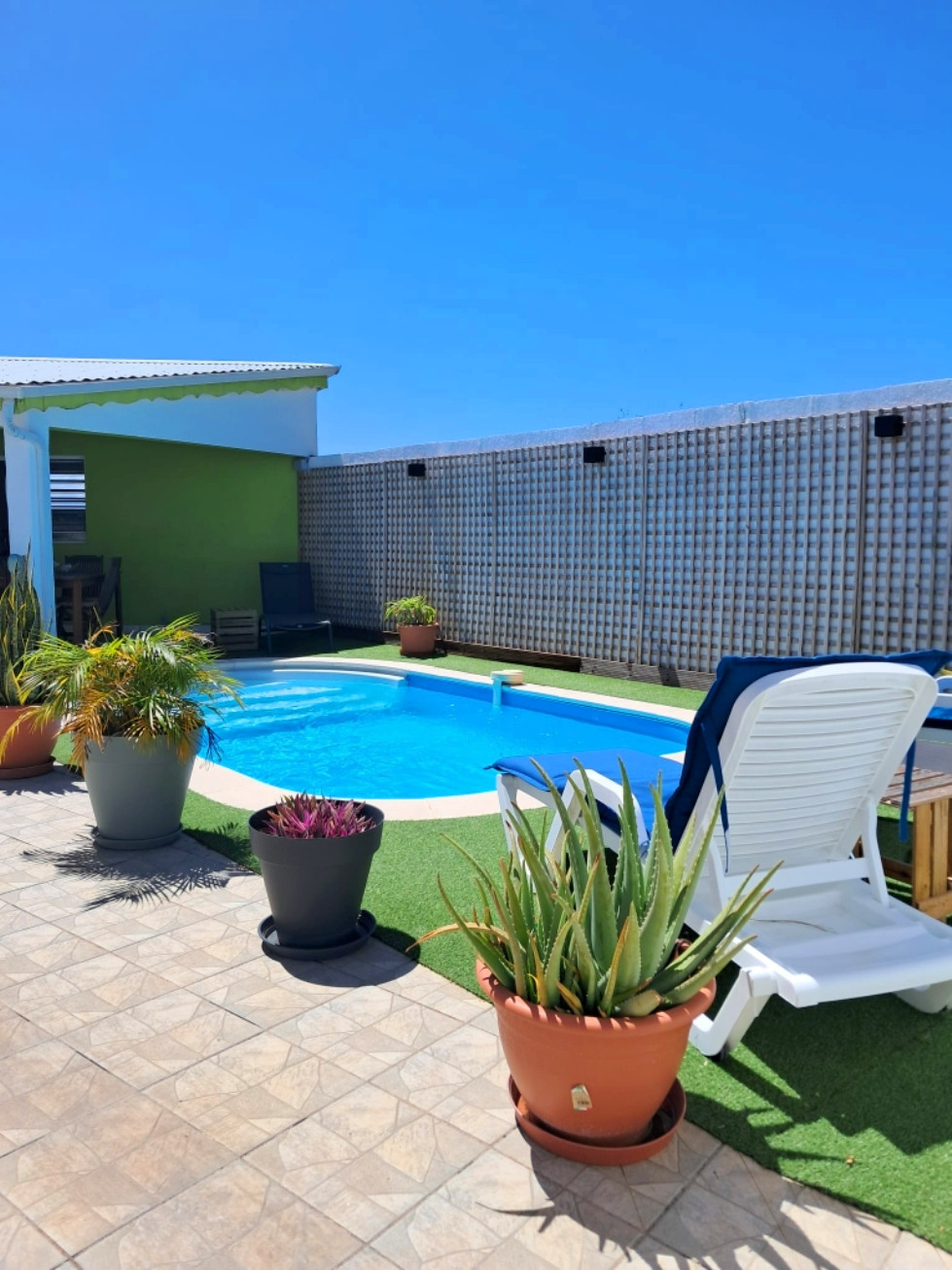 Jolie villa très récente classée 3*** avec piscine privée idéalement située dans un secteur résidentiel de standing à 300 mètres de la plage et à 5 minutes en voiture de la fameuse station balnéaire de Saint François. Particulièrement bien équipée, au calme et sans aucun vis à vis cette maison est le parfait nid douillet pour un couple ou une petite famille.