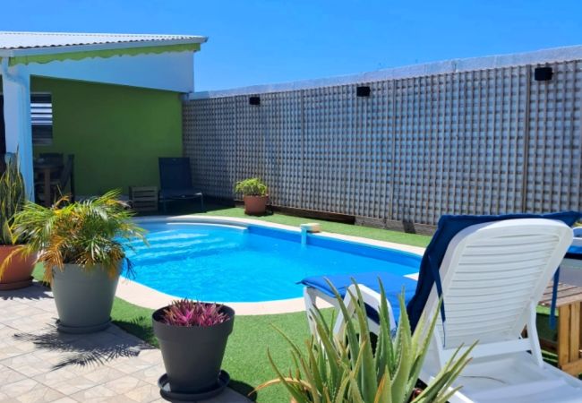 Charmante petite maison, idéale pour 4 personnes, avec piscine et jacuzzi, très bien équipée et agréablement décorée, située dans un quartier résidentiel très calme à proximité immédiate du centre ville de la fameuse station balnéaire de Saint François et de ses plages.