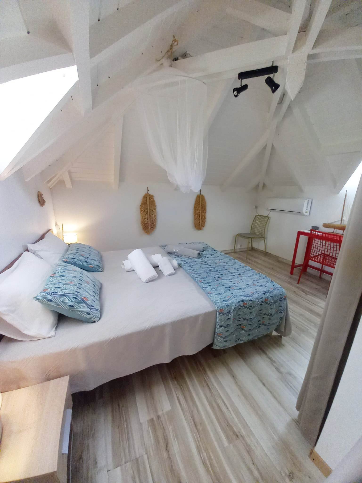 Climatisation : oui dans les 2 chambres. Le salon est équipé d'un ventilateur au plafond.