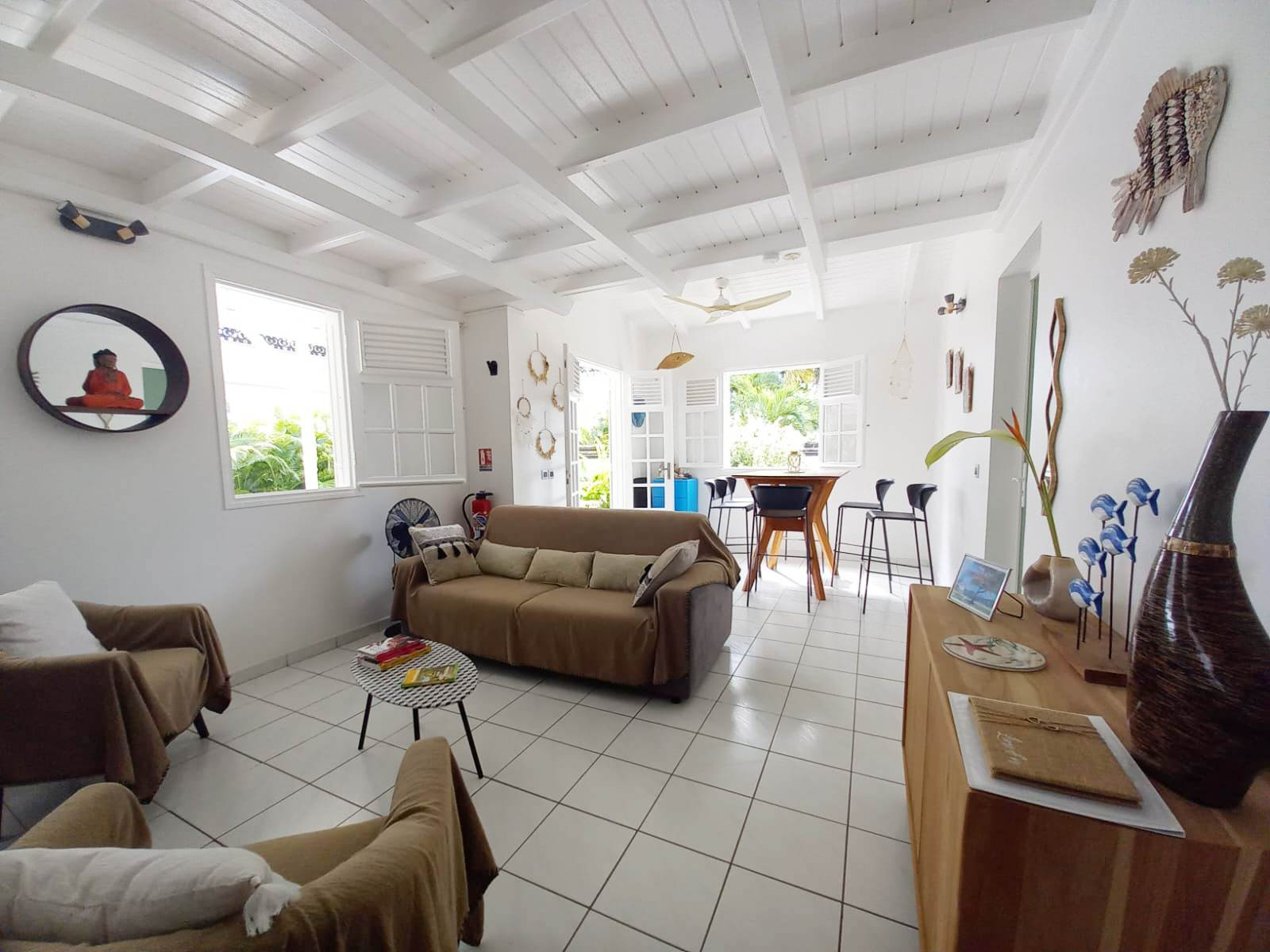 Très belle maison récente, située dans une résidence calme, à proximité immédiate des plages et du centre ville de la fameuse station balnéaire de Saint François. Cette villa a été intégralement rénovée avec un souci du détail très poussé sur la décoration ainsi que sur le choix du mobilier et des équipements. Une ambiance moderne, des beaux volumes, un environnement tranquille, tout est réuni pour un séjour placé sous les signes du dépaysement et du repos dans un cadre typiquement tropical.