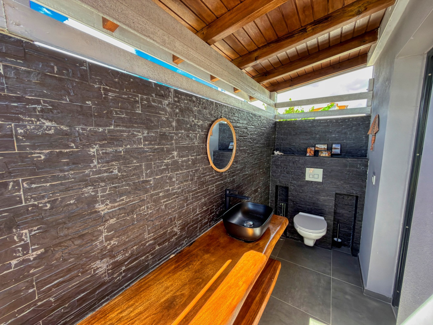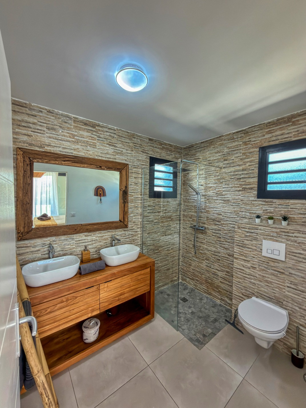 Jardin/terrasse : terrasse de 30 m² avec hamacs et salon d'extérieur complet pour les repas ou la détente. Le jardin de 800 m² entièrement cloturé, sans aucun vis à vis, dispose de projecteurs et de 2 lampadaires pour profiter davantage de vos soirées et du jardin tropical illuminé.